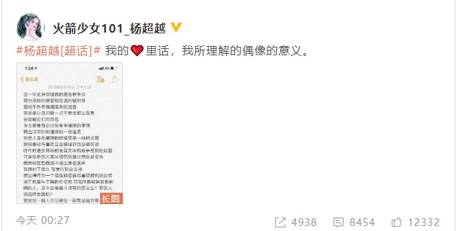 Sáng ngày 16/6, Dương Siêu Việt đăng một bài viết khá dài để thể hiện định nghĩa của từ thần tượng. Cô thản nhiên nói bản thân mình luôn là đề tài tranh luận của mọi người, thậm chí còn có bạo lực trên mạng nhưng đồng thời cũng nhận được nhiều sự yêu thích.