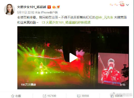 Ngày 11 tháng 5 vừa qua, Ngô Diệc Phàm có buổi concert ở Bắc Kinh thu hút rất nhiều fan hâm mộ, nhưng bất ngờ trong đám đông này xuất hiện thành viên của nhóm nhạc Hỏa tiễn thiếu nữ - Dương Siêu Việt.