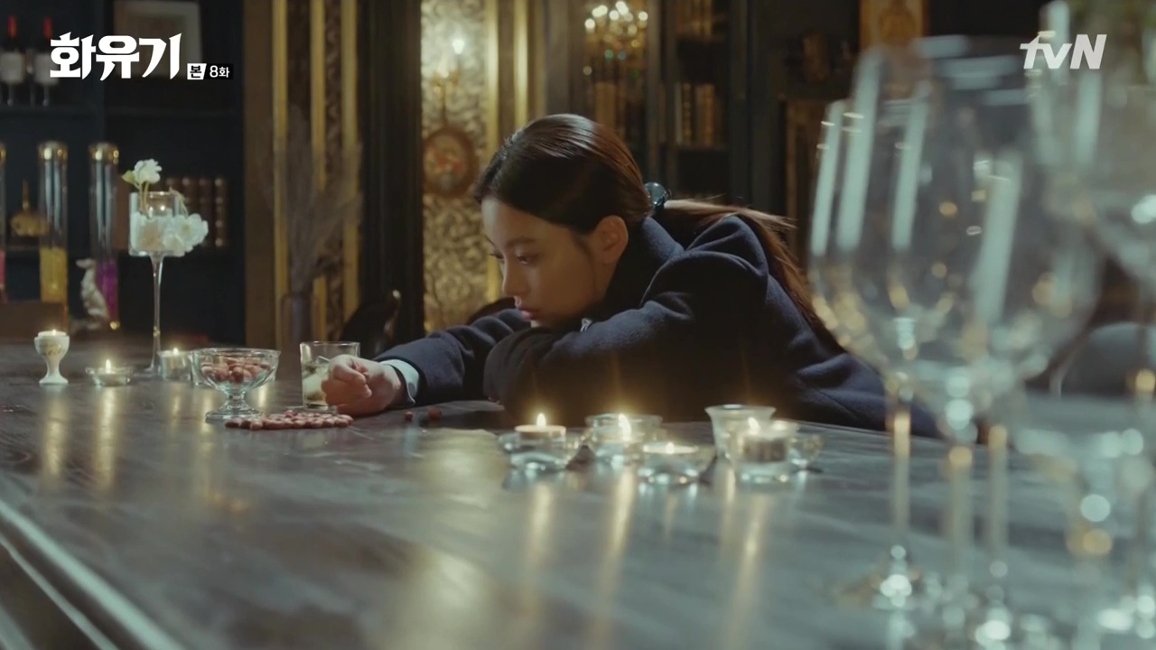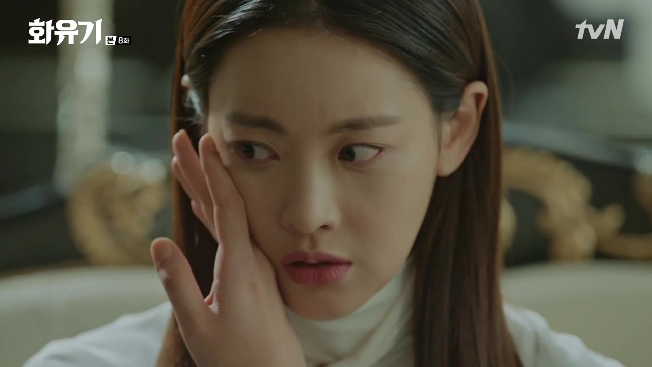 Phản ứng của Đường Tăng chuyển thế là gì? Cô không đẩy ra cũng chẳng cho Oh Gong bạt tai. Cô chỉ kịp định thần sau khi mọi thứ đã xong xuôi. Cô gọi Vua Khỉ là kẻ xấu xa nhưng vẫn tủm tỉm cười khi nhớ lại. Điều tương tự cũng xảy đến với Oh Gong. Anh cũng cười thầm và tự hôn lên bàn tay của chính mình để tái hiện nụ hôn đó. Ngỡ tưởng cả 2 đã bắt đầu có thêm bước tiến triển mới trong tình cảm thì Woo Hwi Chul tiếp tục “chia loan rẽ thúy” khi đã tiết lộ cho Sun Mi biết, Son Oh Gong có hàng tá lọ đồ nhắm đã làm sẵn chỉ chờ để đánh chén chung với thịt của Sun Mi khiến cô buồn khổ. Cả 2 lại cãi vã với nhau. Oh Gong cứng đầu bảo mình chỉ giữ lại đồ nhắm chỉ để nhắc nhở bản chất thật của anh vốn là yêu quái. Sun Mi đau đớn nhận ra việc Oh Gong không ăn thịt cô khi cô tháo vòng tay là điều không thể. Con mồi và thú săn yêu nhau thế quái nào được?