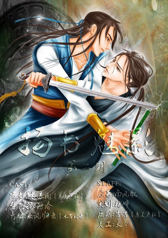 Bộ tiểu thuyết đam mỹ Dương thư mị ảnh gồm 3 quyển, thuộc thể loại cổ trang, giang hồ, sinh tử văn (nam nhân sinh con). Nội dung chính xoay quanh Quân Thư Ảnh – một giáo chủ ma giáo lạnh lùng, tàn nhẫn, sẵn sàng làm mọi thứ để đạt được mục đích của mình. Trái ngược với hắn là Sở Phi Dương – nam nhân được mệnh danh là đại hiệp giang hồ, chuyên trừ gian diệt ác.