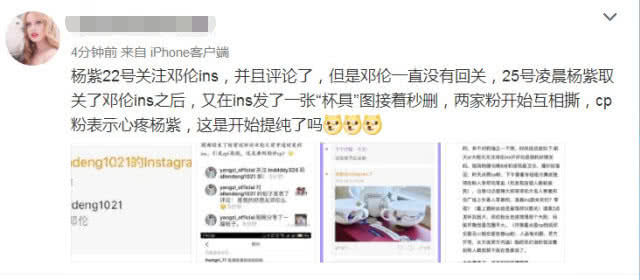 Hôm nay (25/9) Dương Tử dùng Instagram follow cho bạn diễn chung bộ phim Hương mật tựa khói sương thế nhưng bên nhà đối phương lại không có có lời hồi đáp. Vì thế, Dương Tử nhanh chóng bỏ follow, từ đó dẫn đến việc fan của cặp đôi này vào lên án Đặng Luân không có lễ độ, không có phong độ gì cả. Mặt khác fan Đặng Luân lại vào bày tỏ ý kiến đồng thời mắng chửi Dương Tử không thương tiếc.
