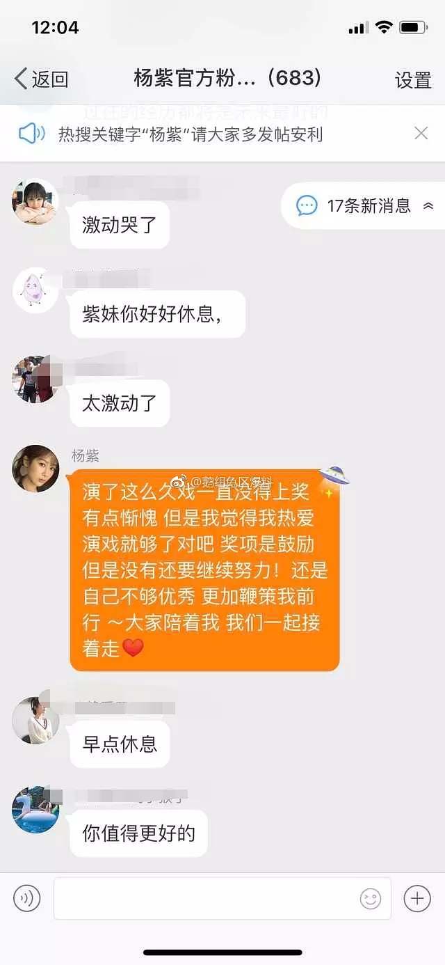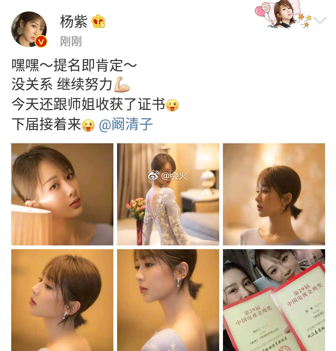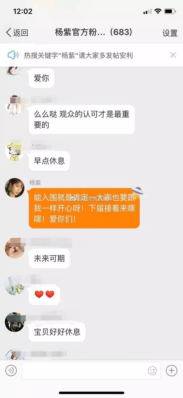 Trước tình hình đó, Dương tử vào tối qua sau khi đăng bài lên weibo của chính mình để an ủi cộng đồng mạng đang theo dõi cô với bài viết “Haha - Được đề tên cũng xem như là một sự khẳng định rồi. Không sao cả, tiếp tục nỗ lực. Hôm nay còn nhận được giấy chứng nhận cùng với sư tỷ. Lần sau tiếp tục tới nhé @Hám Thanh Tử”.