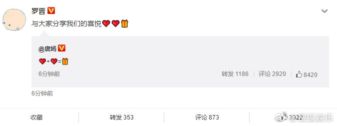 Ngày 19 tháng 9, Đường Yên đăng tải lên Weibo, công khai tin mừng mang thai, nữ diễn viên viết “❤+❤=? “. Sau đó, La Tấn cũng đã chia sẻ bài viết này kèm theo nội dung: “Chia sẻ tin mừng của chúng tôi với mọi người.”