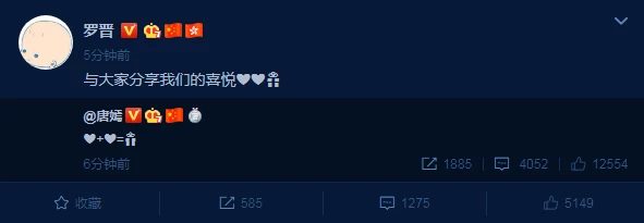 Hôm qua (19.09), Đường Yên đăng tải lên Weibo, công khai tin mừng mang thai, nữ diễn viên viết “Tình yêu + Tình yêu = quà tặng”. Sau đó, La Tấn cũng đã chia sẻ bài viết này kèm theo nội dung: “Chia sẻ tin mừng của chúng tôi với mọi người.”