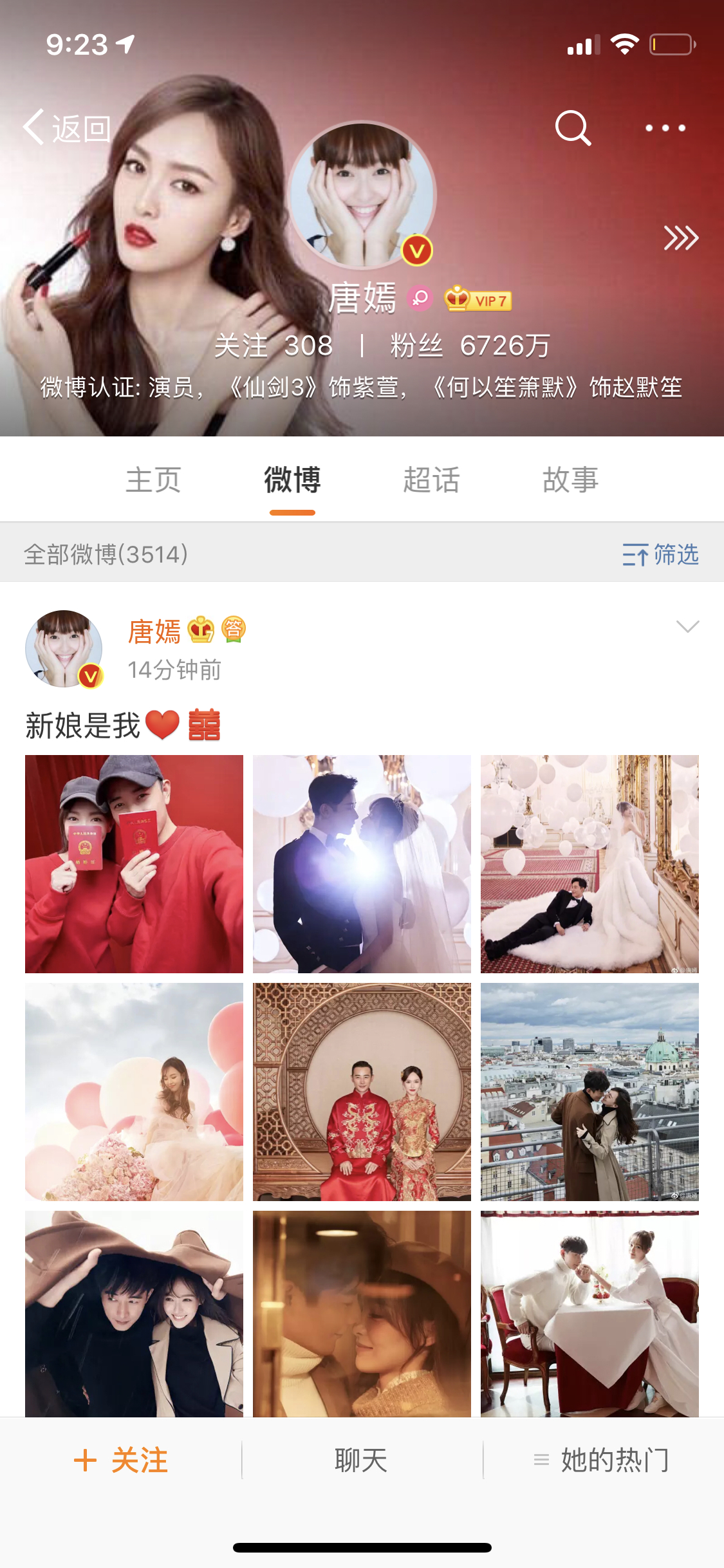 Đường Yên và La Tấn vừa mới đăng tải những tấm hình hạnh phúc nhất của cặp đôi trong ngày trọng đại của đời người. Cùng với dòng trạng thái rất đáng yêu, “Tân nương là tôi” được Đường Yên chia sẻ và La Tấn cũng không kém cạnh “Tân lang là tôi”.