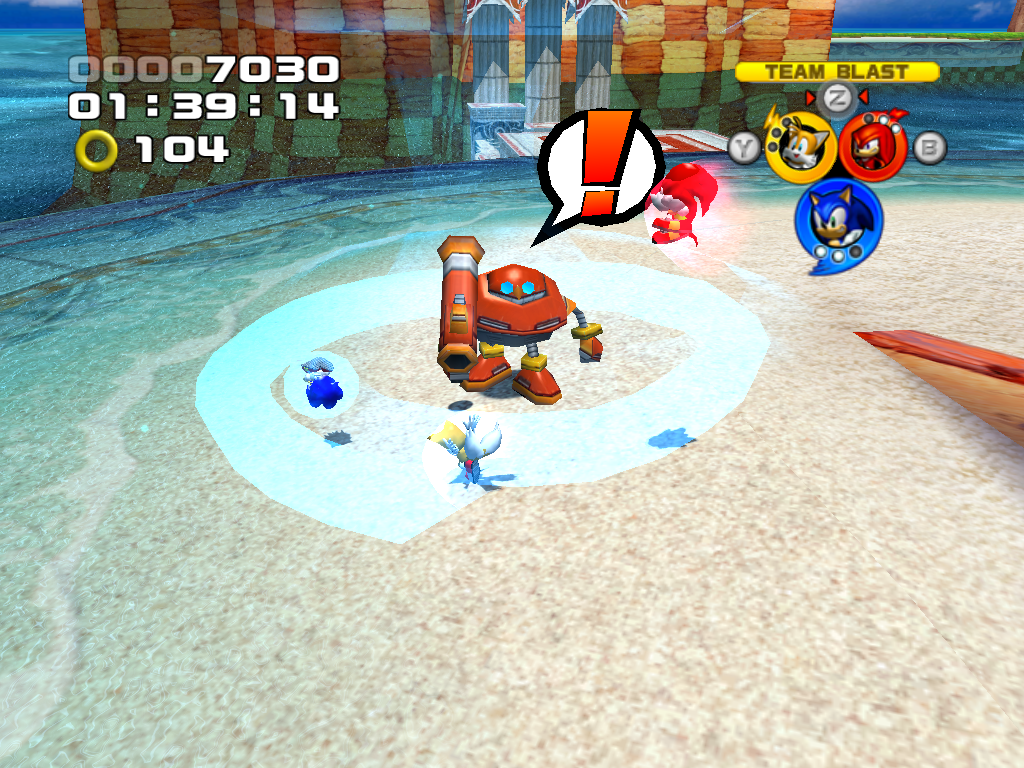 Cảnh chiến đấu cuối cùng giữa Sonic và Tiến sĩ Robotnik đưa khán giả đi vòng quanh thế giới, thế nhưng tốc độ của Sonic dường như không giúp cậu là mấy khi Robotnik có trong tay nguồn năng lượng vô hạn từ sợi lông của cậu. Ở phân cảnh tại Ai Cập, Sonic đã thông minh sử dụng tốc độ của mình tạo ra lốc xoáy cát để đánh lạc hướng Robotnik. Tuyệt chiêu này thực chất từng được cậu sử dụng trước đây, từ màn phối hợp đồng đội trong game 3D Sonic Heroes (2003), hay cả trong tựa game Sonic Chronicles: The Dark Brotherhood (2008).