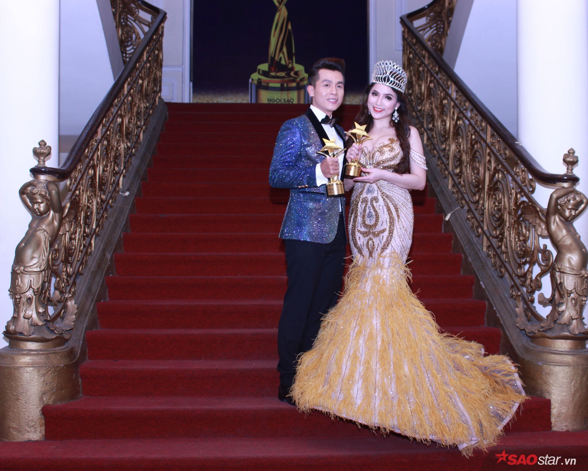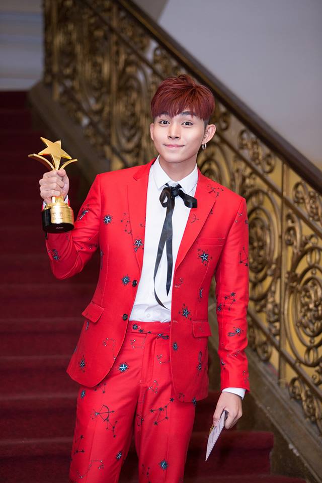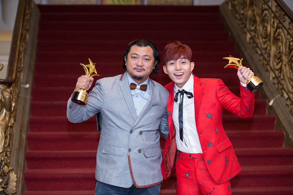 Đạo diễn Phan Gia Nhật Linh cầm trên tay chiếc cúp của Hoàng Yến Chibi vì cô đang ở nước ngoài.