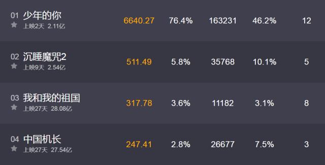 Bộ phim điện ảnh Em của niên thiếu sau khi công chiếu có khẩu bia khá tốt, điểm đánh giá đạt đến con số 9,5 và không dừng ở đó, chỉ sau ngày thứ hai công chiếu, doanh thu phòng vé trong phút chốc đã kéo to khoảng cách với các phim khác. Từ ngày công chiếu đến 9 giờ sáng ngày 26/10 đã đạt hơn 200 triệu thì tin chắc những ngày tiếp theo, doanh thu phòng vé sẽ cao như thế nào. Đồng thời phim này cũng trở thành quán quân doanh thu phòng vé trong ngày đầu tiên.