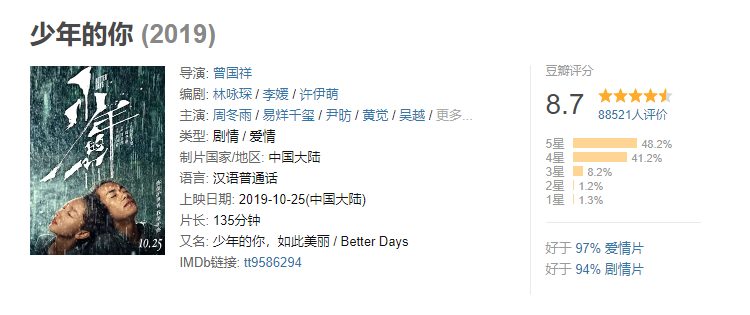 Diễn xuất của Dịch Dương Thiên Tỉ và Châu Đông Vũ được khán giả khen ngợi rất nhiều và theo sau đó là nội dung phim về bạo lực học đường cùng những thước phim cảm động đến mức không cầm được nước mắt. Số đông sau khi xem xong Em của niên thiếu đều cho 5 sao trên Douban.