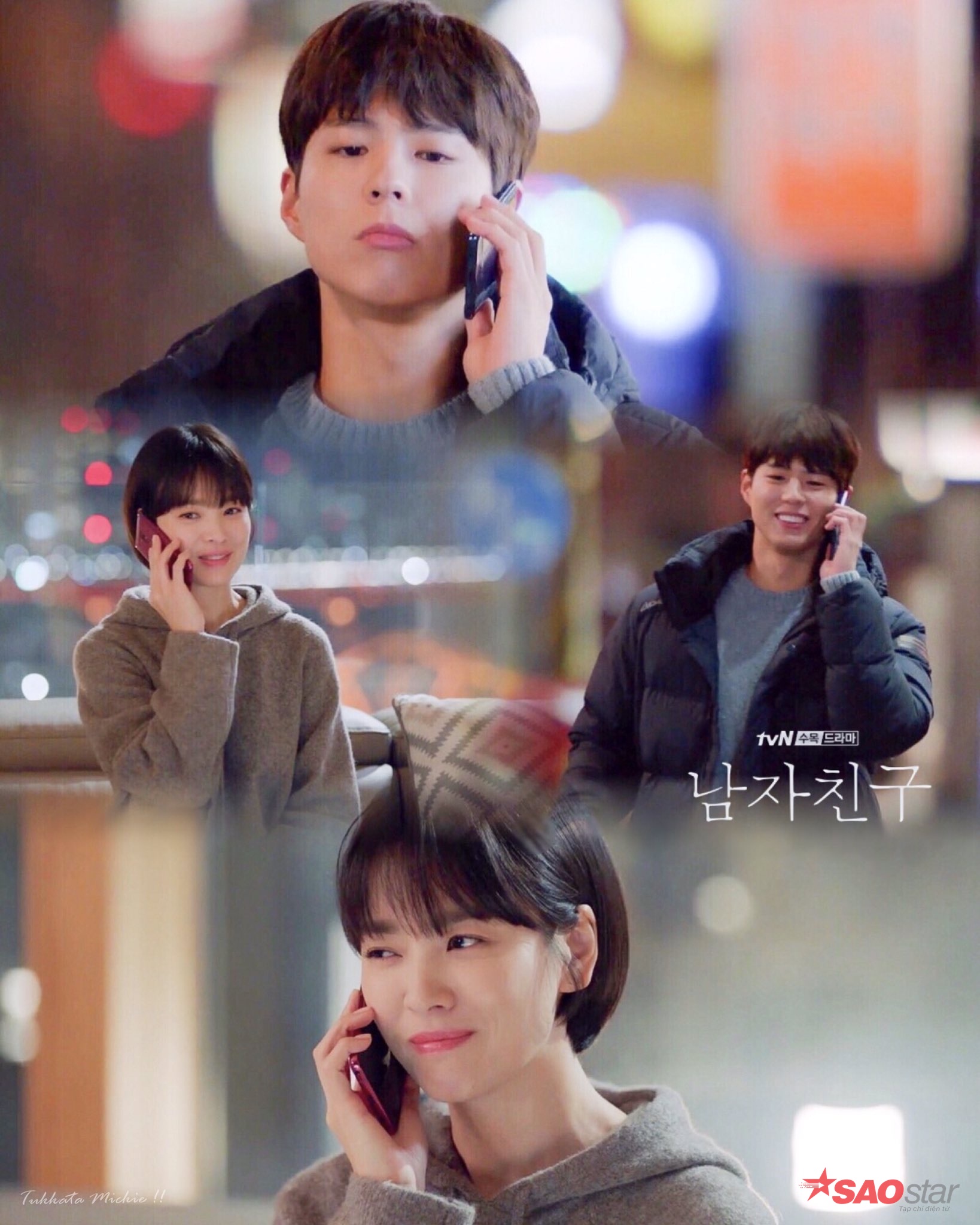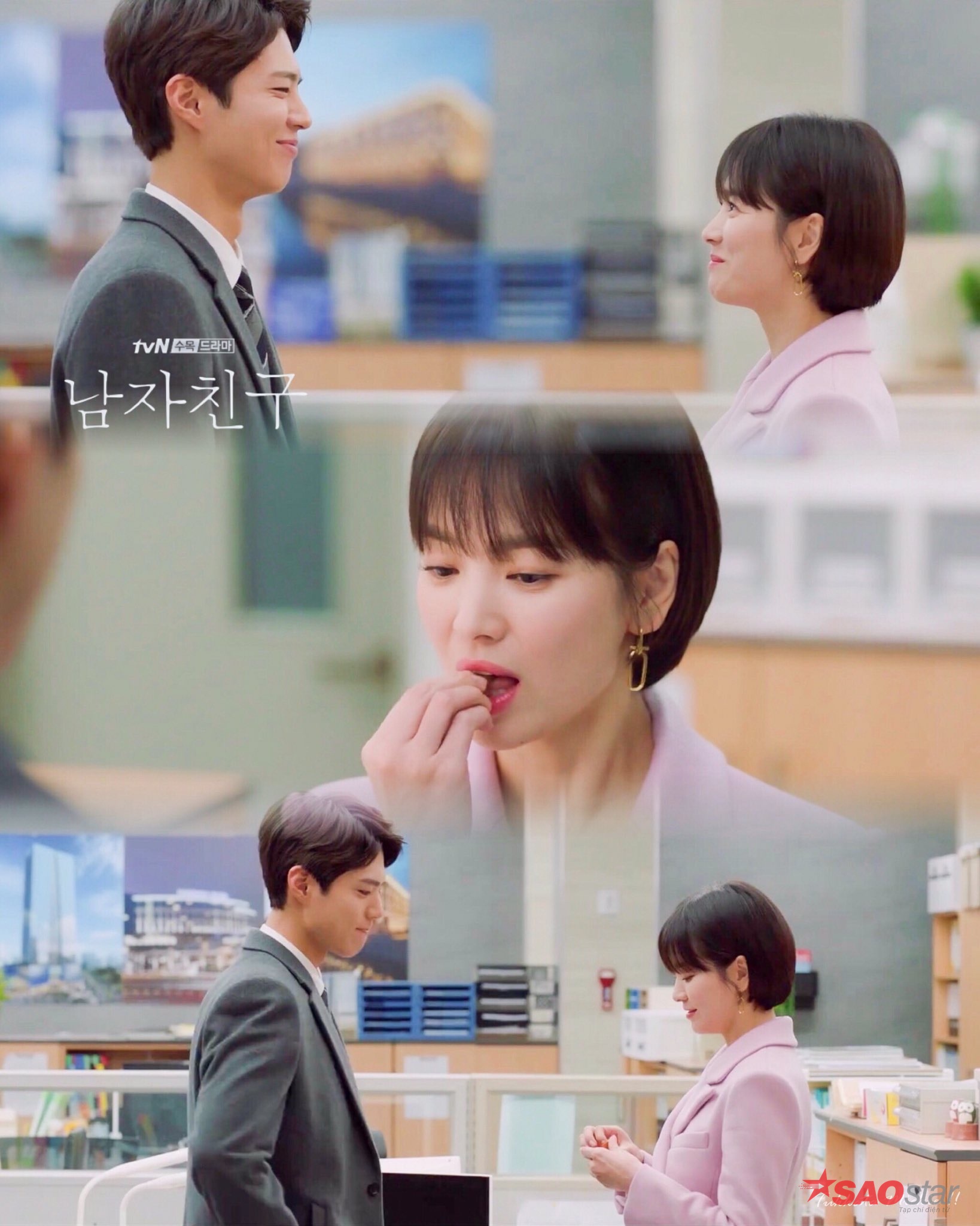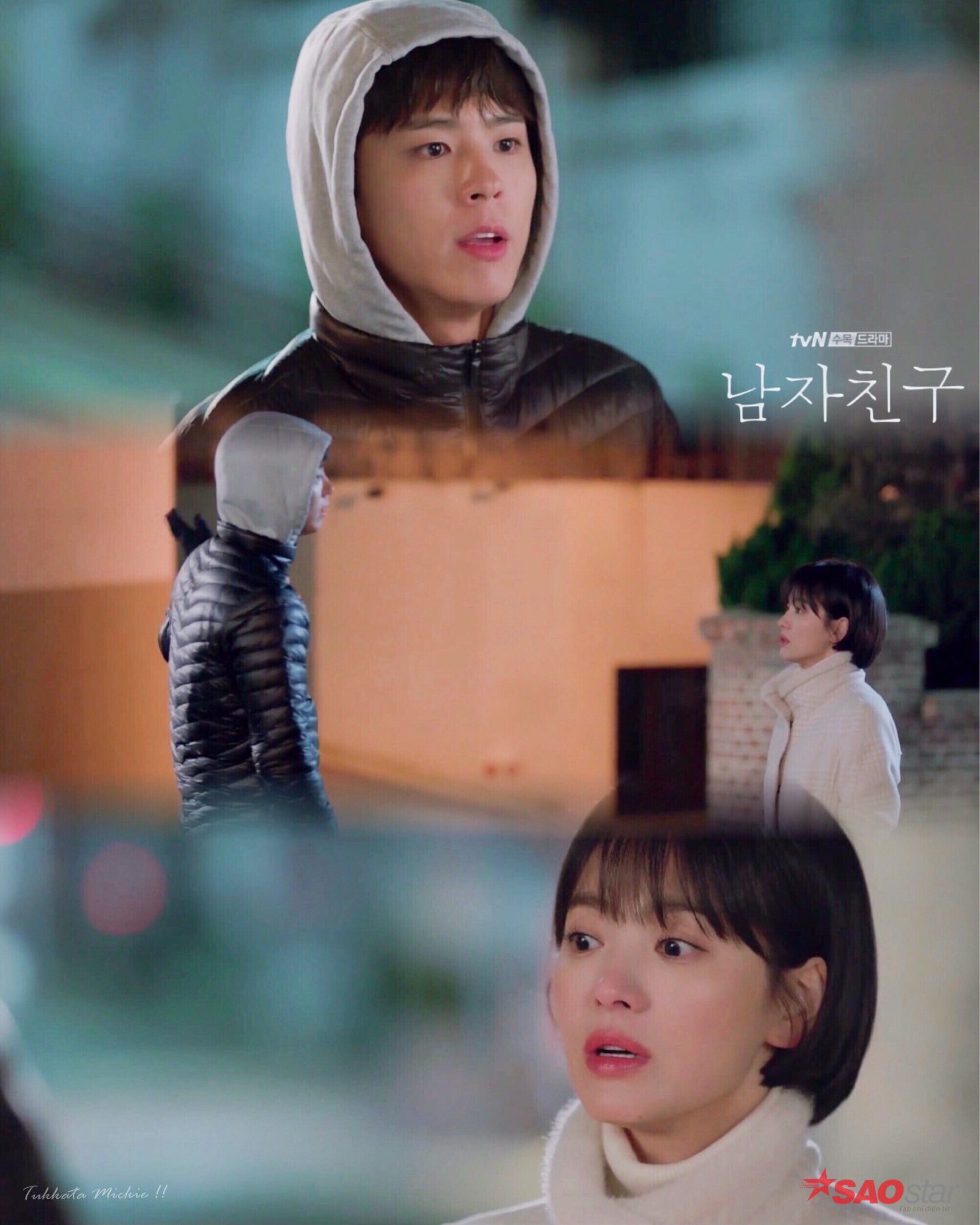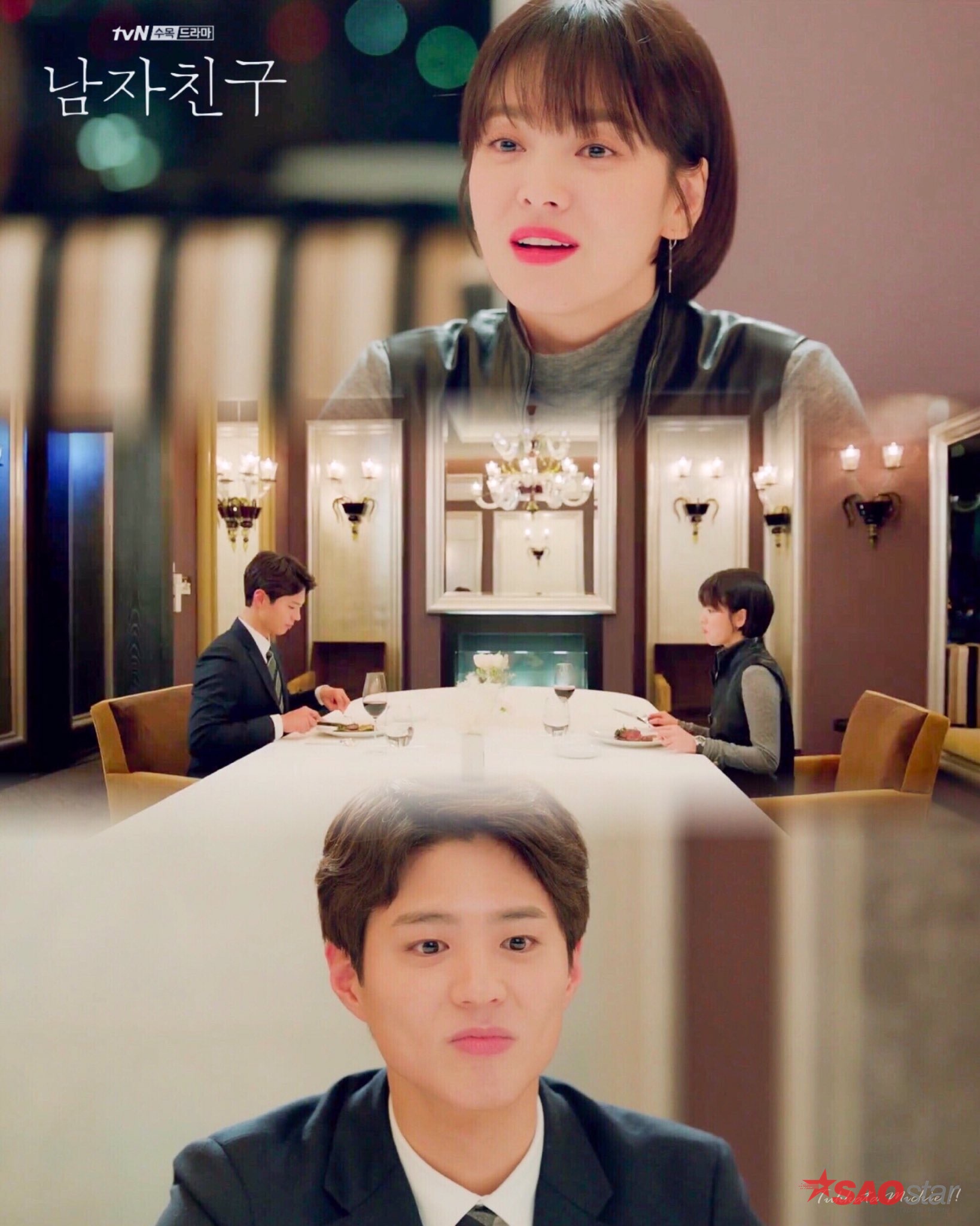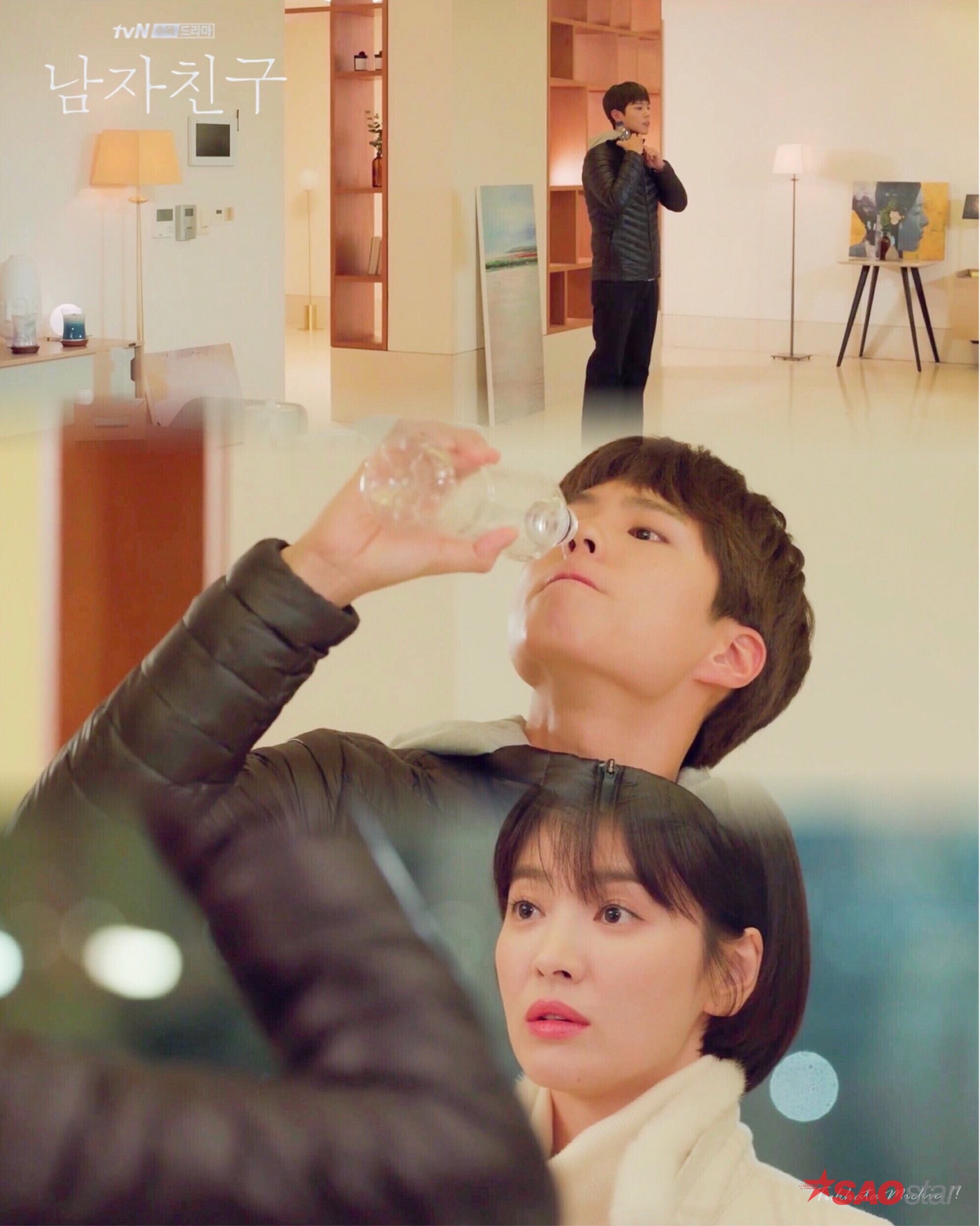 Mở đầu tập 7 của bộ phim truyền hình Gặp gỡ (Encounter) đài tvN, Kim Jin Hyuk (Park Bo Gum) vui mừng khi Cha Soo Hyun (Song Hye Kyo) thừa nhận trước báo chí rằng đang có mối quan hệ mập mờ với một chàng trai.