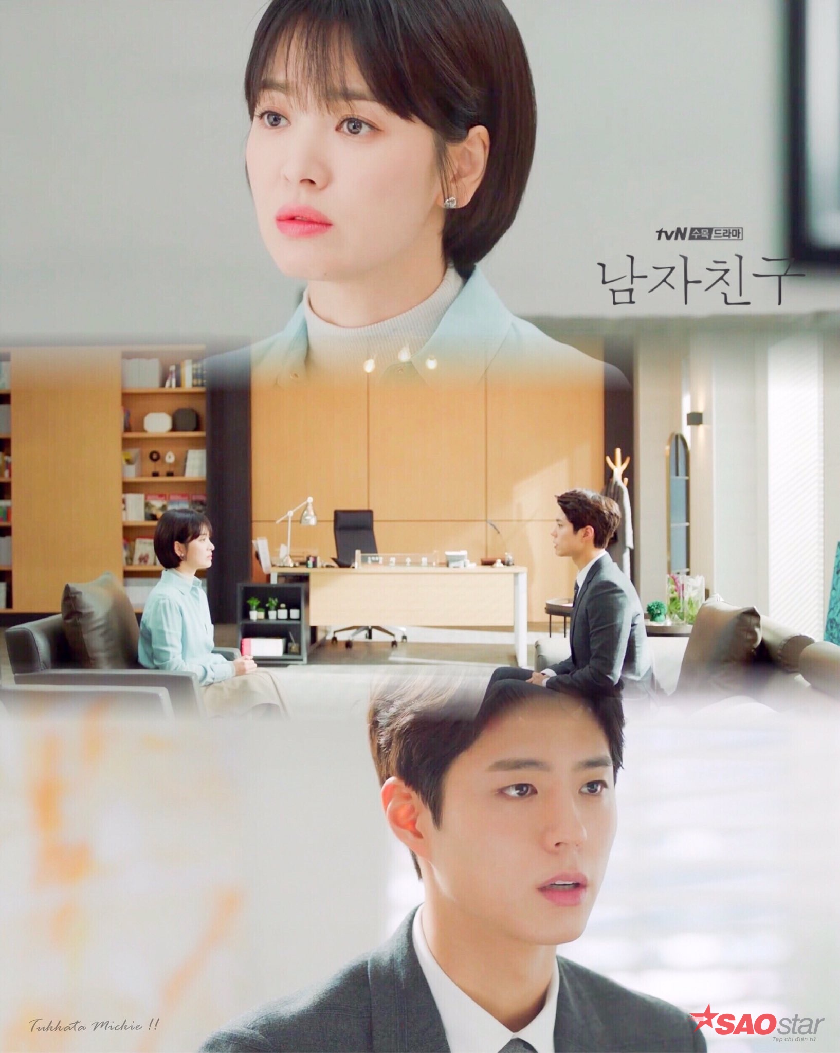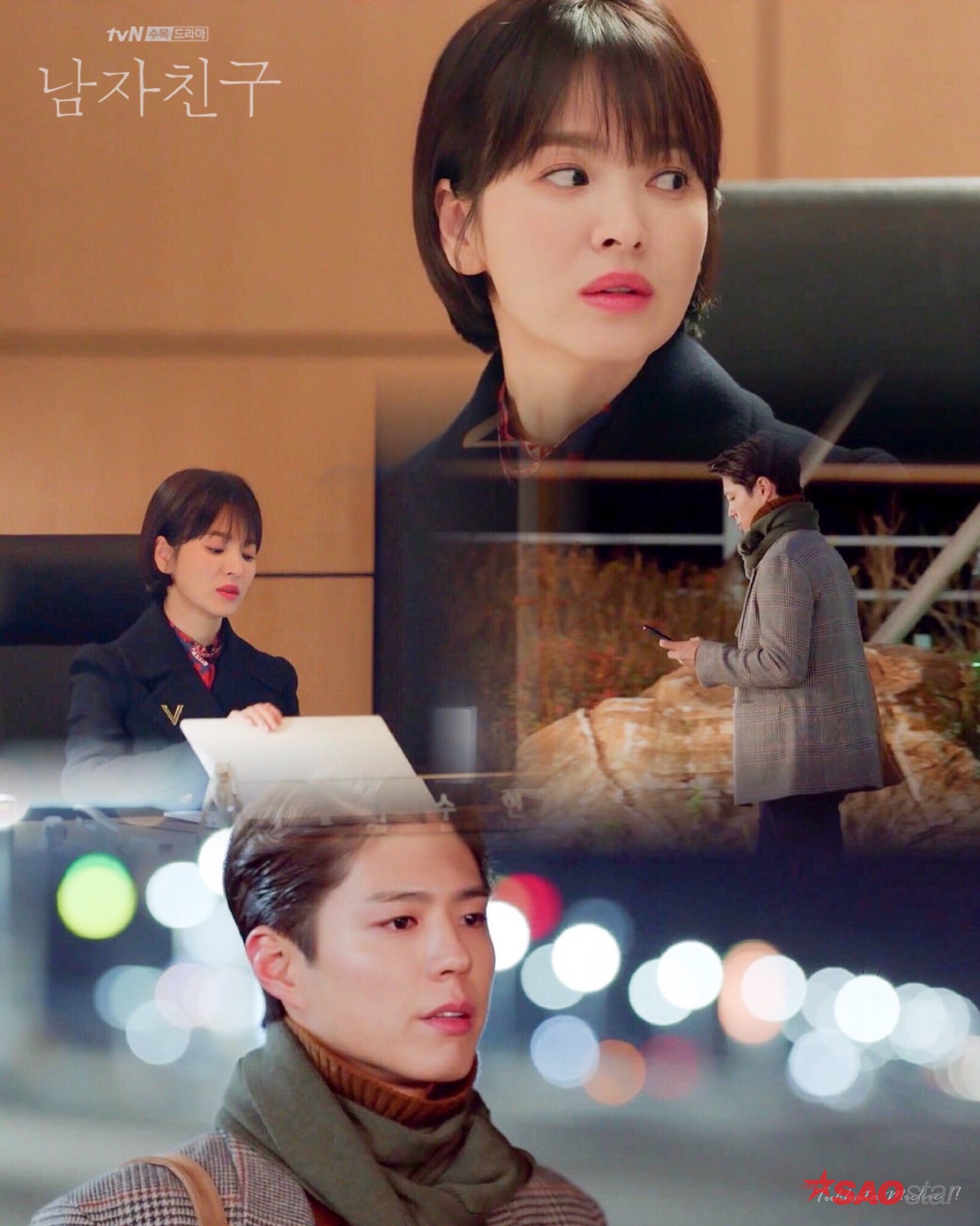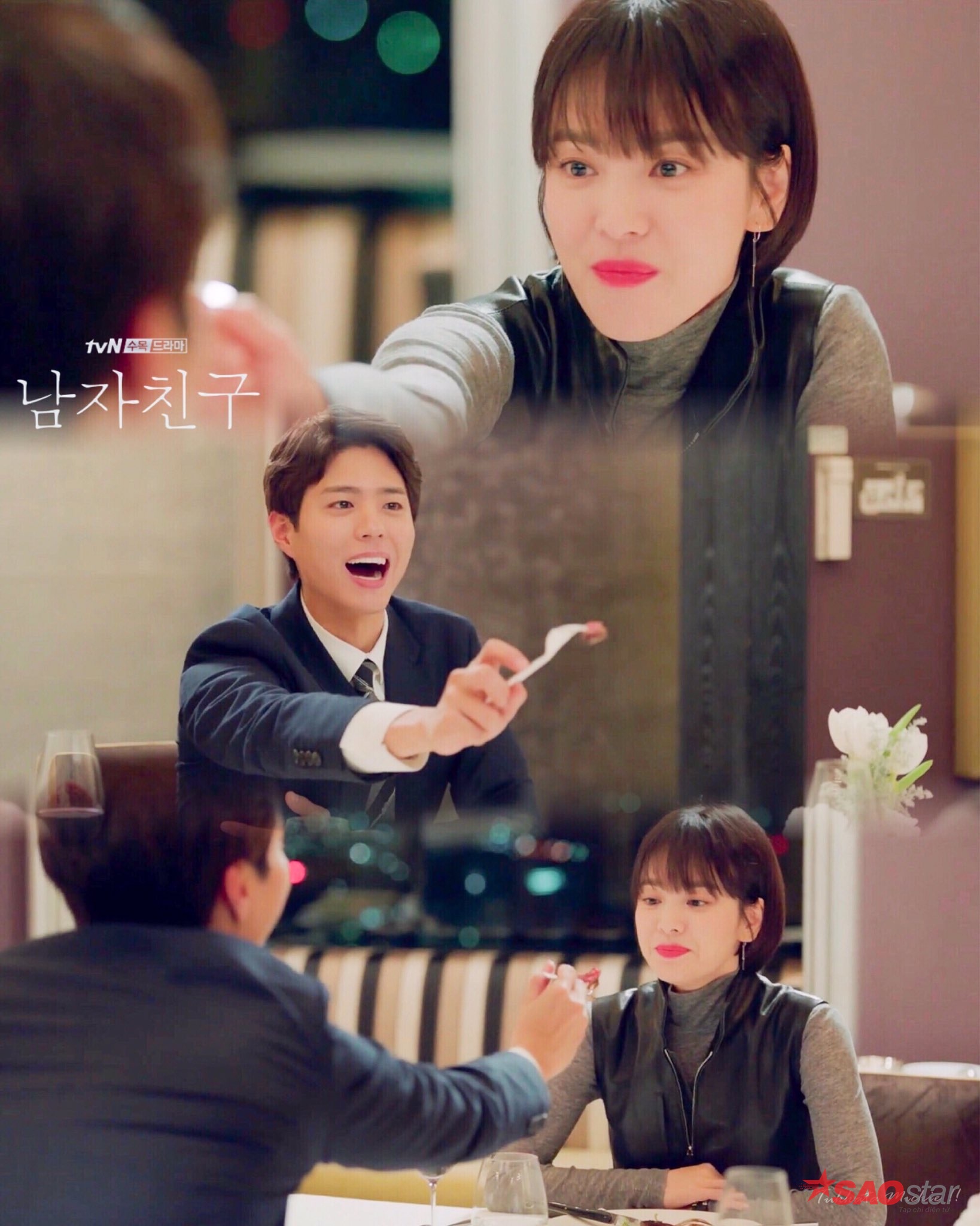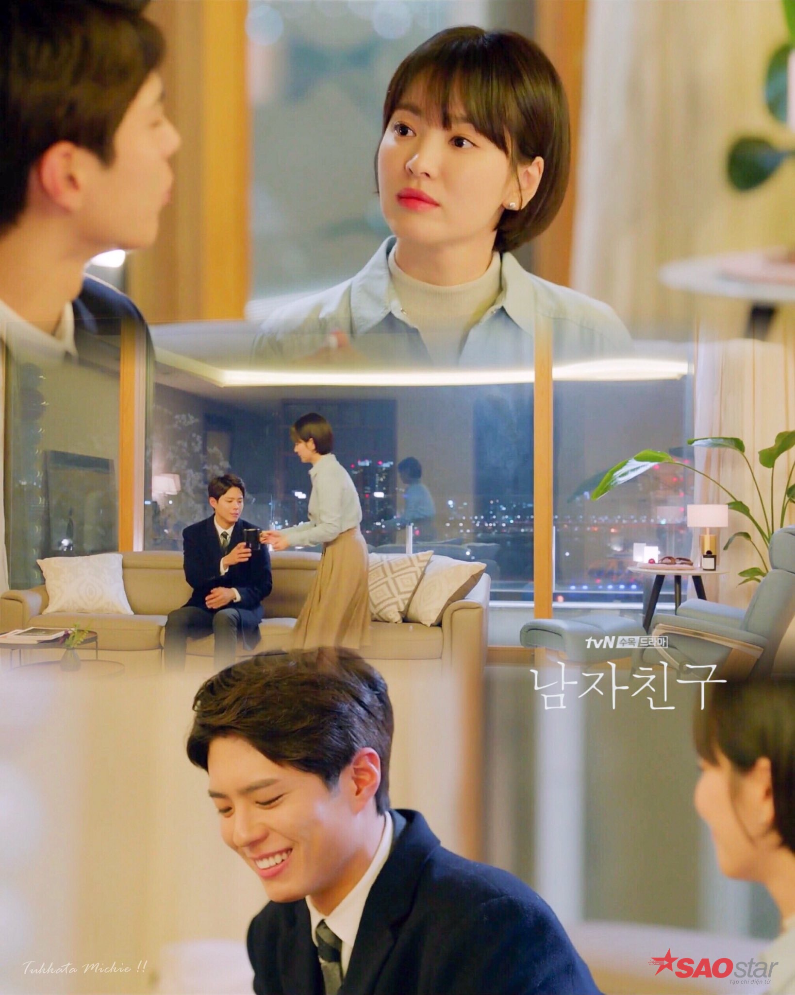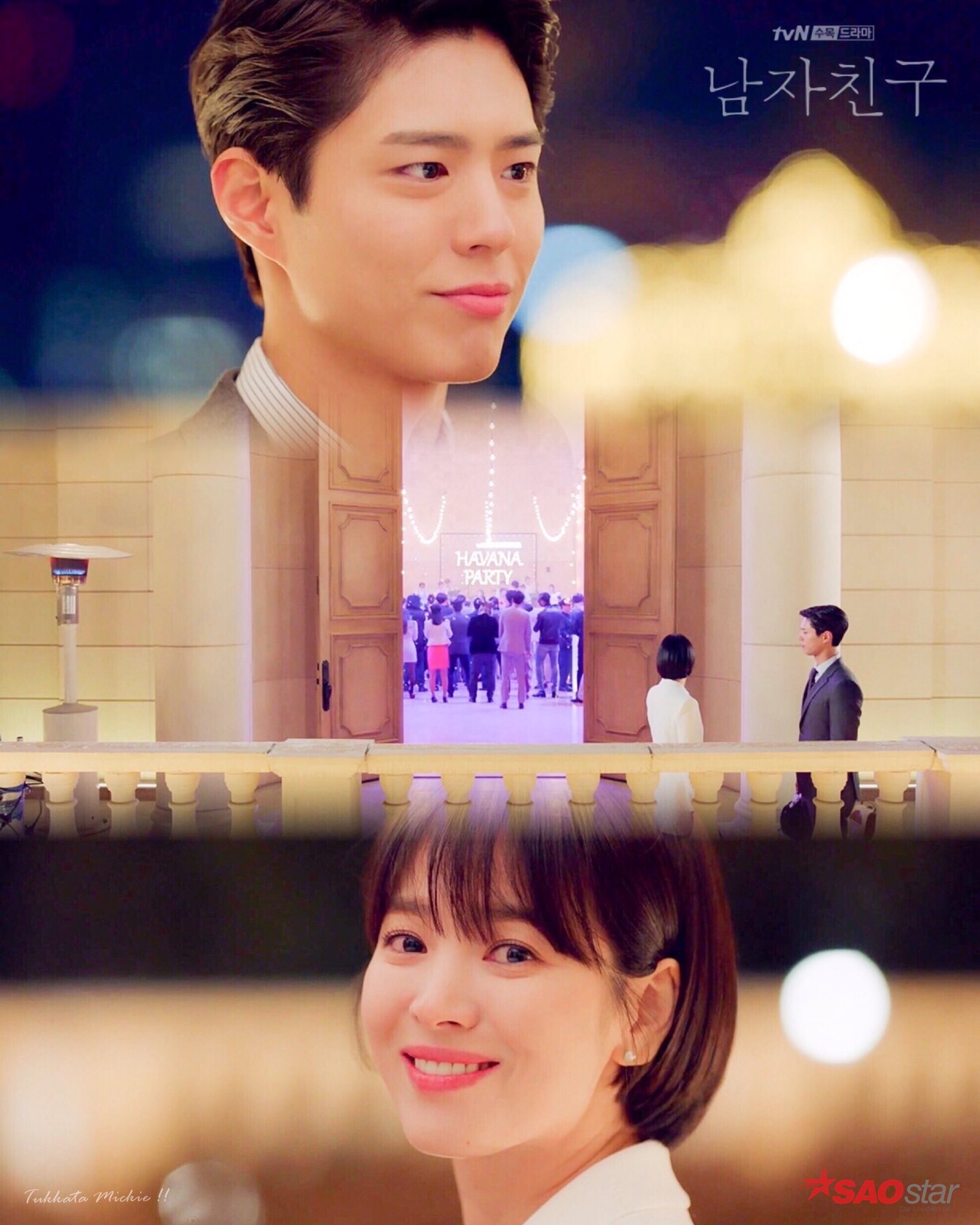 Mở đầu tập 7 của bộ phim truyền hình Gặp gỡ (Encounter) đài tvN, Kim Jin Hyuk (Park Bo Gum) vui mừng khi Cha Soo Hyun (Song Hye Kyo) thừa nhận trước báo chí rằng đang có mối quan hệ mập mờ với một chàng trai.