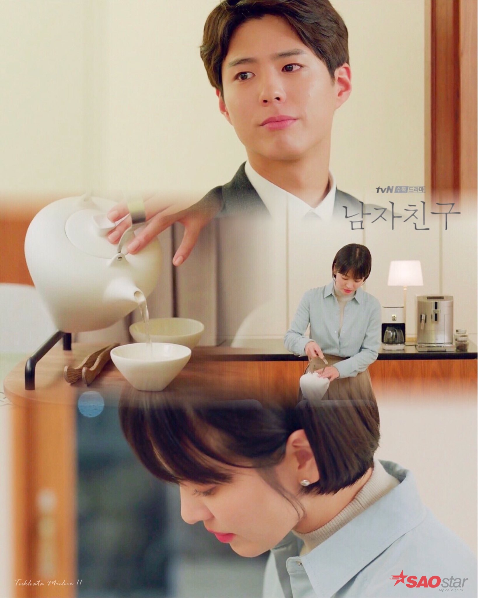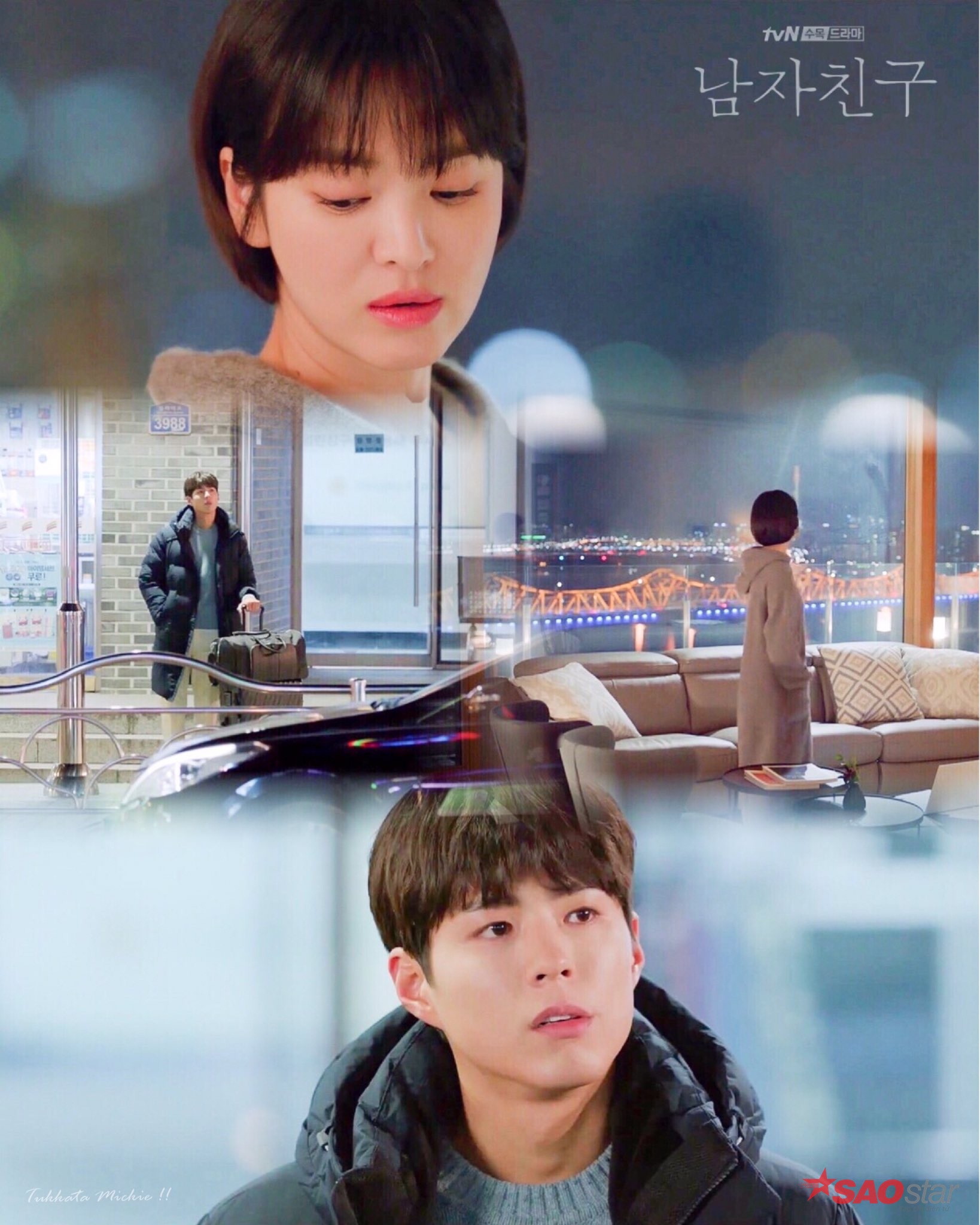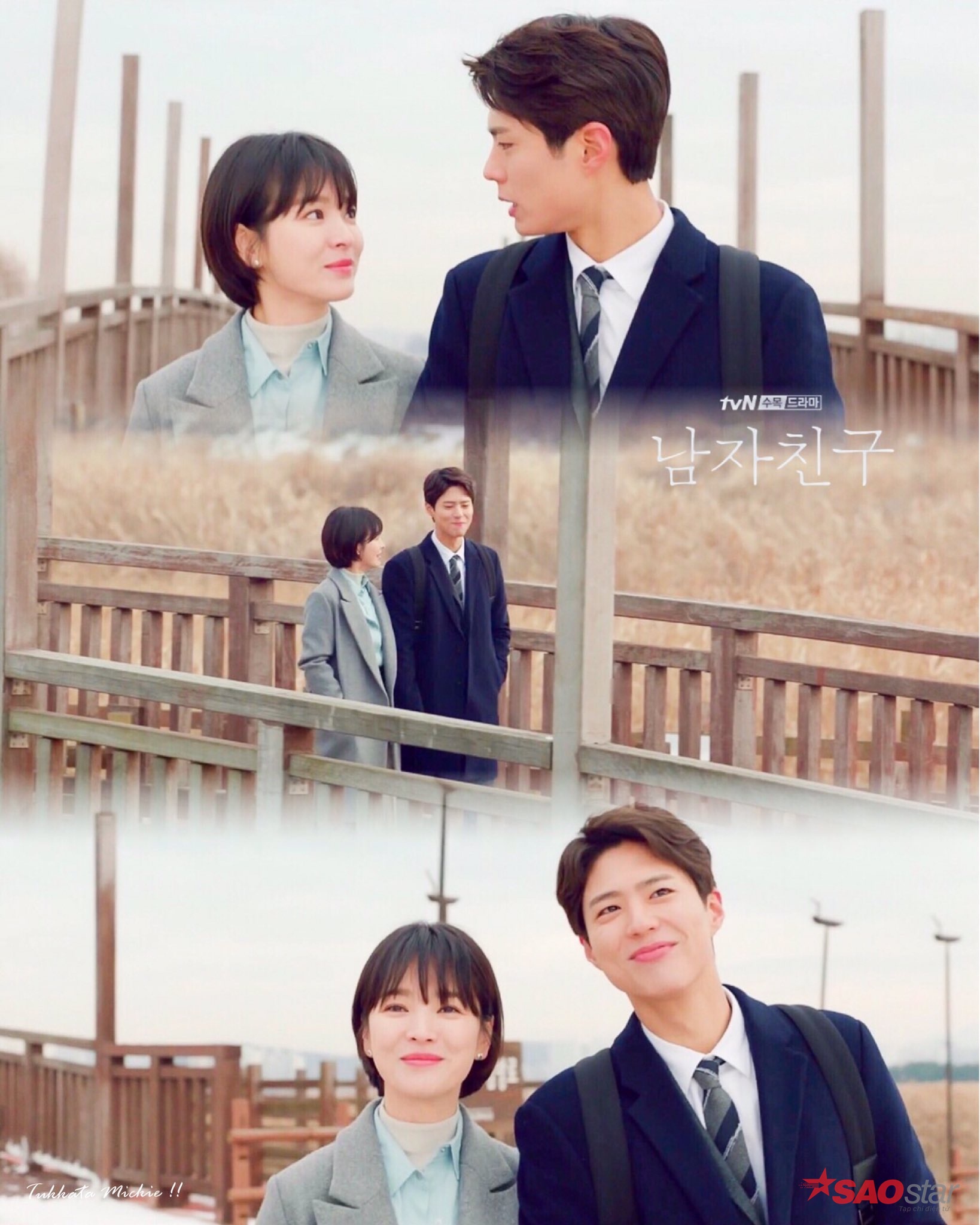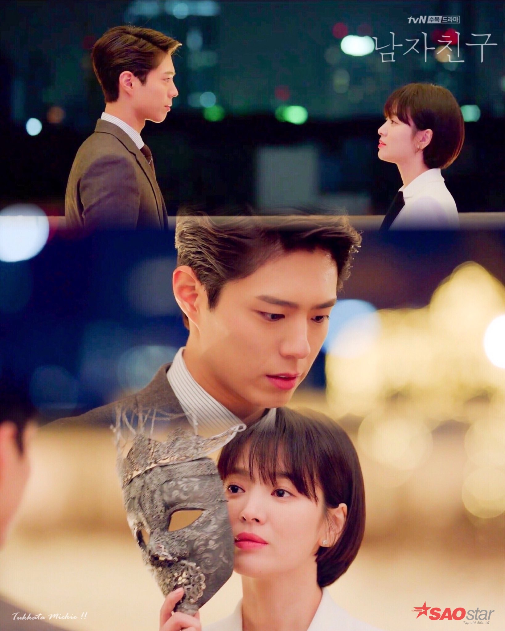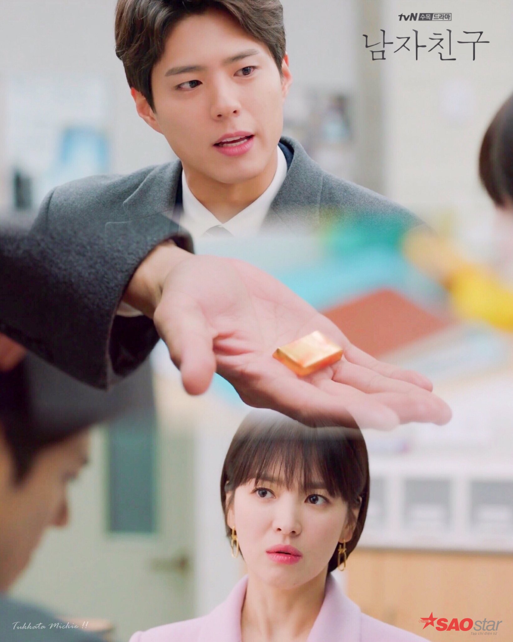 Mở đầu tập 7 của bộ phim truyền hình Gặp gỡ (Encounter) đài tvN, Kim Jin Hyuk (Park Bo Gum) vui mừng khi Cha Soo Hyun (Song Hye Kyo) thừa nhận trước báo chí rằng đang có mối quan hệ mập mờ với một chàng trai.