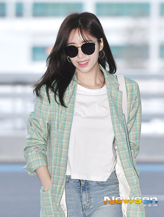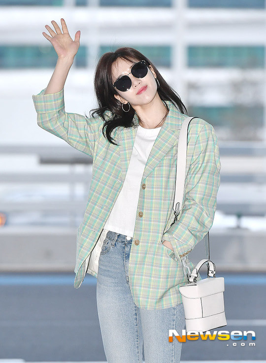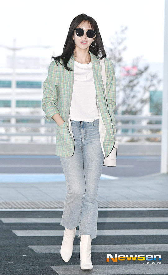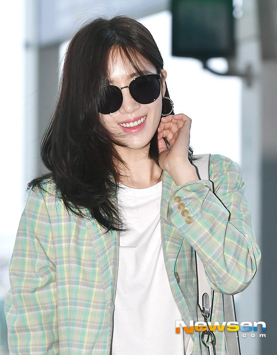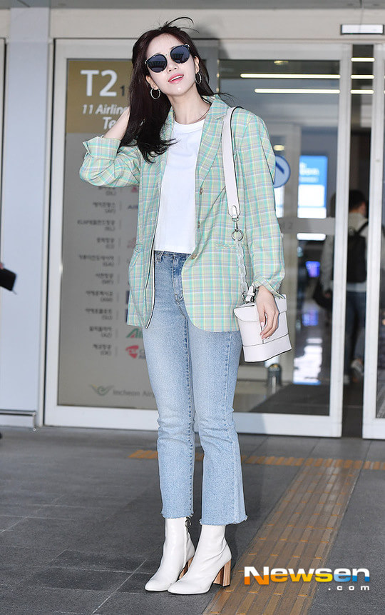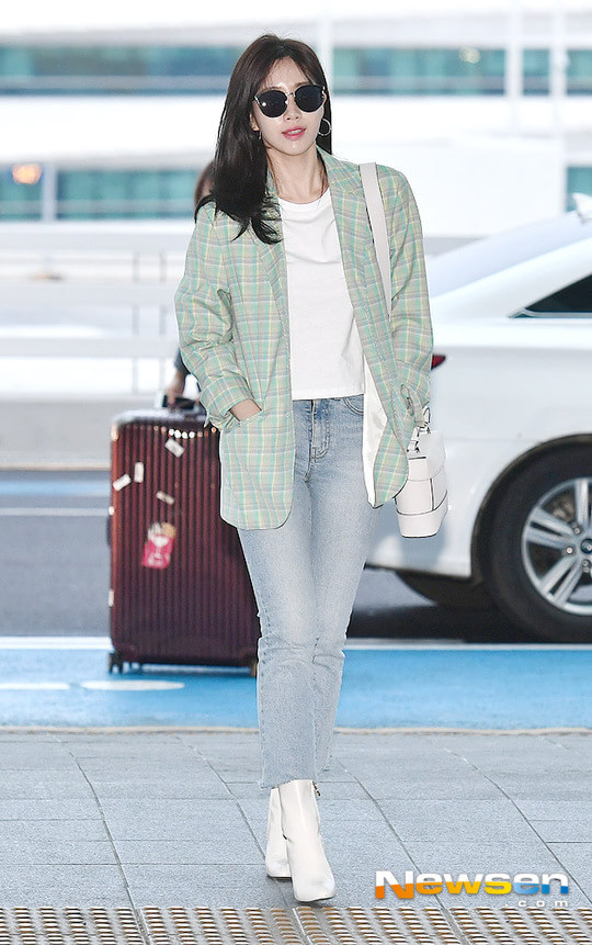 Được biết, Eun Jung khởi hành đến Thành phố Hồ Chí Minh, Việt Nam. Điện trên người bộ trang phục giản dị gồm quần jean, áo thun trắng kết hợp áo khoác xanh kẻ sọc, mắt kính đen, càng làm nổi bật lên làn da trắng sáng, vóc dáng thanh lịch của nữ diễn viên.
