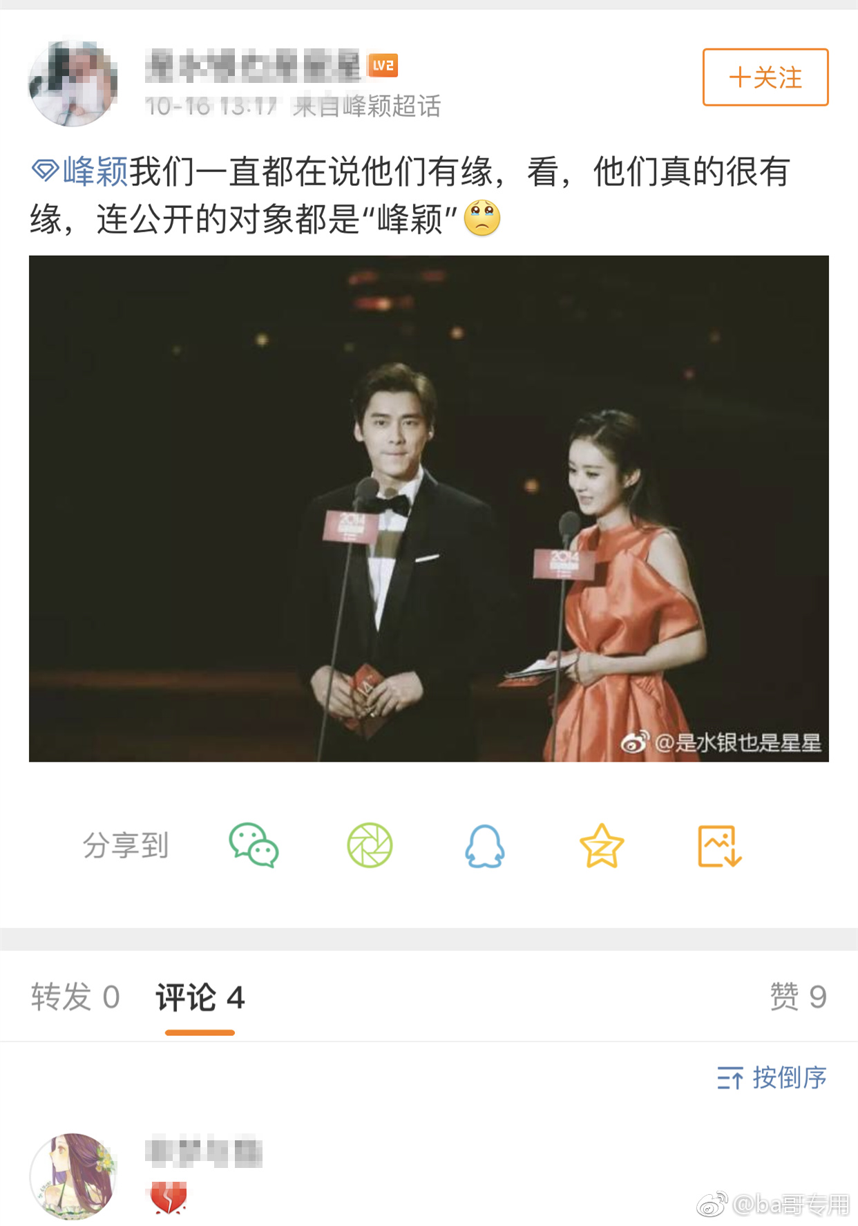 - #Phong Dĩnh (Lý Dịch Phong - Triệu Lệ Dĩnh), chúng ta vẫn luôn nói là họ có duyên, nhìn xem, hai người đúng là rất có duyên thật, đến đối phương công khai cũng là “Phong Dĩnh”.
