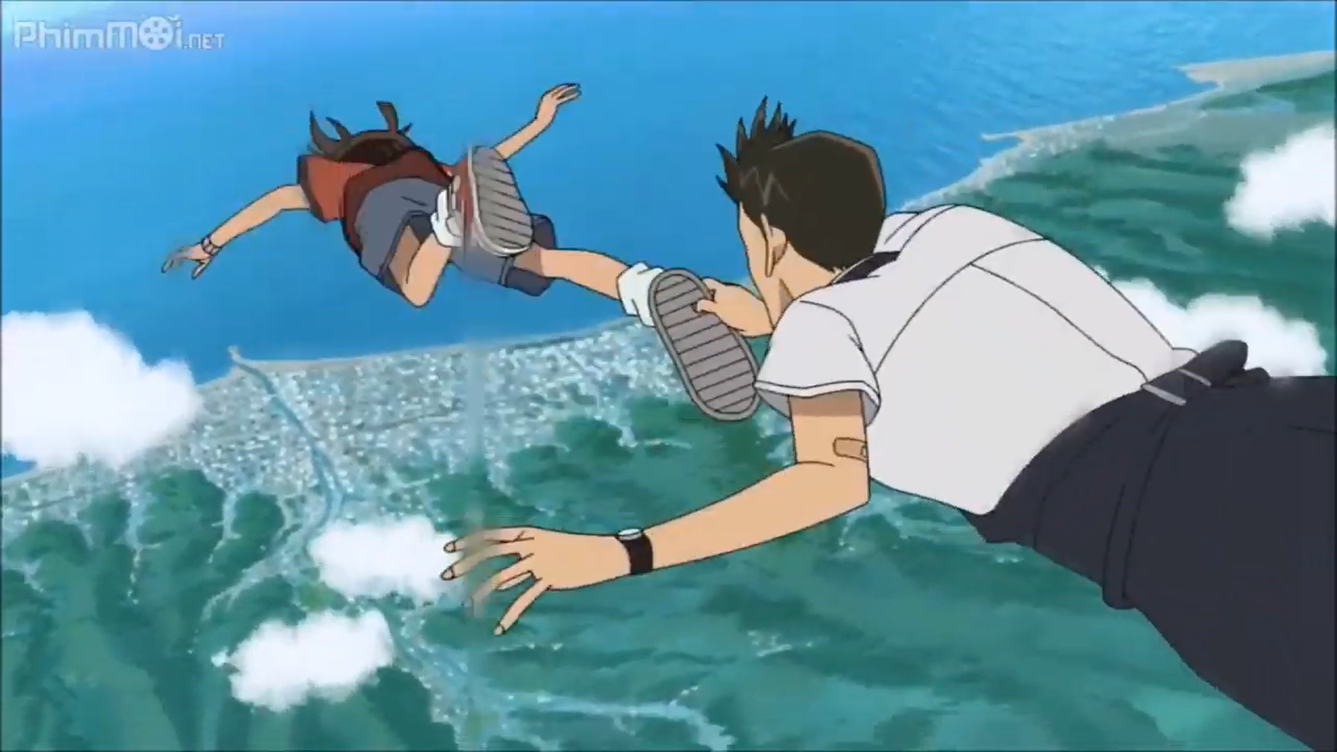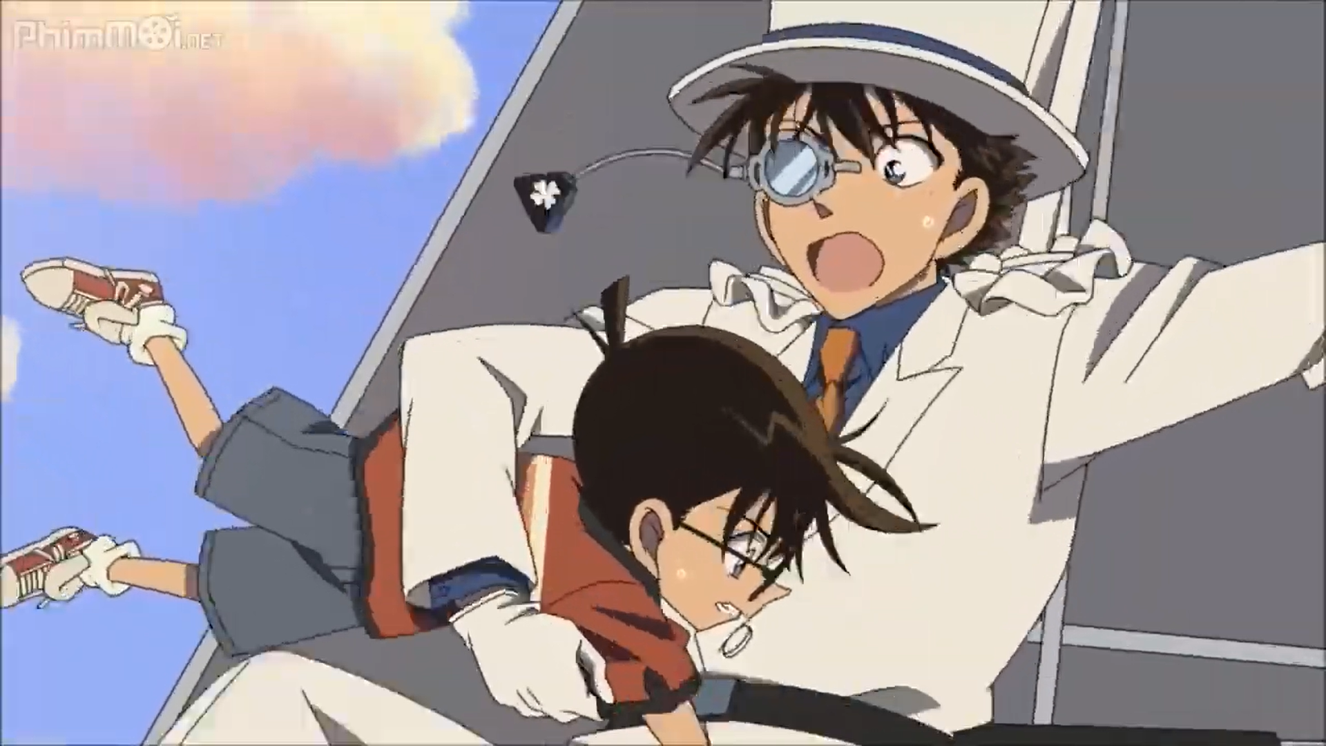 Trong tập Con tàu bị đánh cắp trên bầu trời, Conan đã bị tên cướp quăng ra khỏi tàu bay