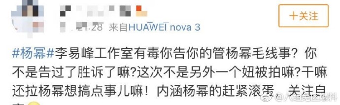 Ngay khi bài viết này được đăng tải vì bên trong có nhắc đến “Dương Mịch ngoại tình Lý Dịch Phong”, “Lý Dịch Phong và Dương Mịch đã lĩnh chứng kết hôn“…. làm cho fan Dương Mịch cảm thấy rất tức giận vì theo họ những chuyện này hoàn toàn không liên quan đến Dương Mịch tại sao lại lôi tên cô vào, cho rằng Dương Mịch nằm không trúng đạn (vì vụ Lý Dịch Phong dính tin đồn hẹn hò cùng hotgirl mạng Blase nên phía phòng làm việc giao cho luật sư xử lý một lần, kéo theo vụ Dương Mịch trước đó), thế nhưng phía fan Lý Dịch Phong cho rằng đây là đang bảo vệ danh tiếng của cả hai không tốt sao, làm gì có chuyện nằm không trúng đạn.