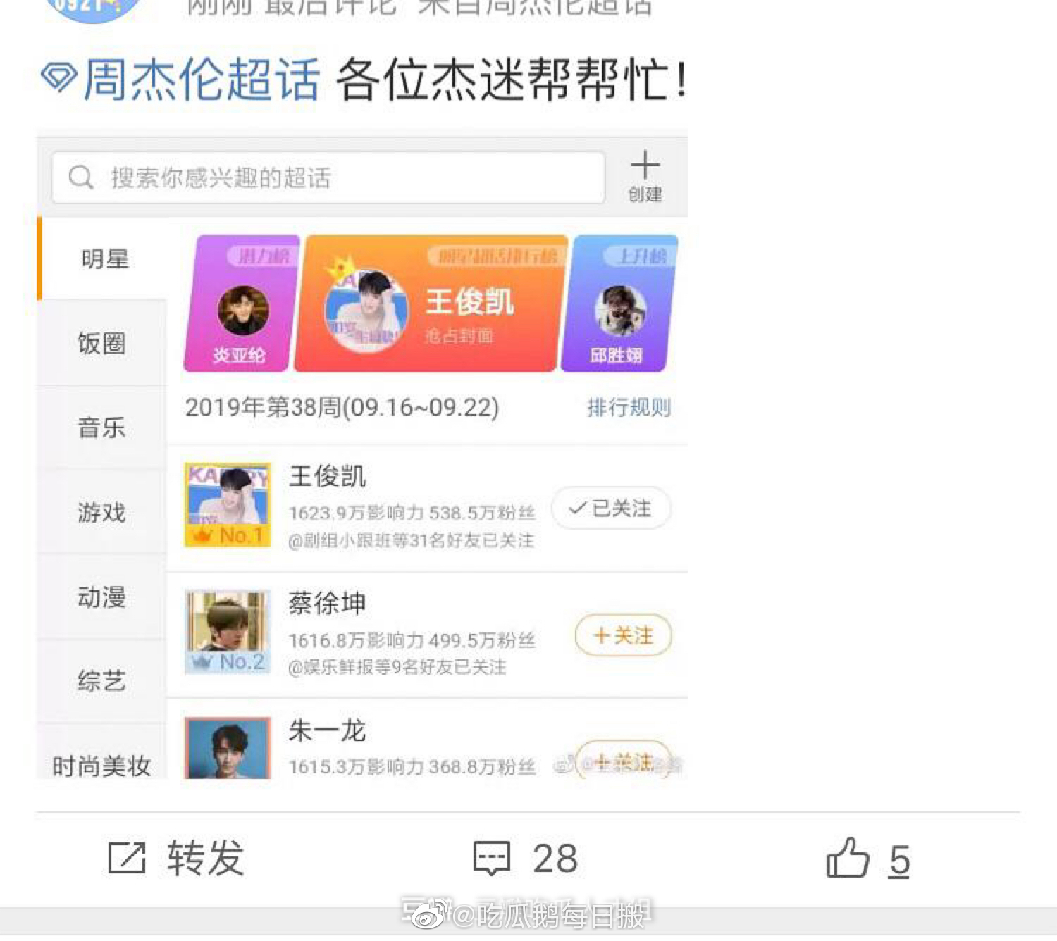 Fan hâm mộ Châu Kiệt Luân rất có thực lực khi trước đây chỉ trong một đêm có thể giúp Châu Kiệt Luân vượt qua Thái Từ Khôn đứng đầu vị trí này. Vì vậy việc fan Tuấn Khải nhờ sự giúp đỡ của fan Châu Kiệt Luân cũng không có gì lạ.