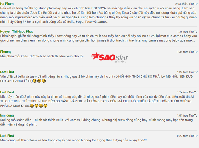 Trong khi đó vẫn có một lượng khán giả không nhỏ vẫn ngày đêm tranh cãi về sự hơn kém của Taew và Bella qua hai dự án mới nhất mà họ tham gia.