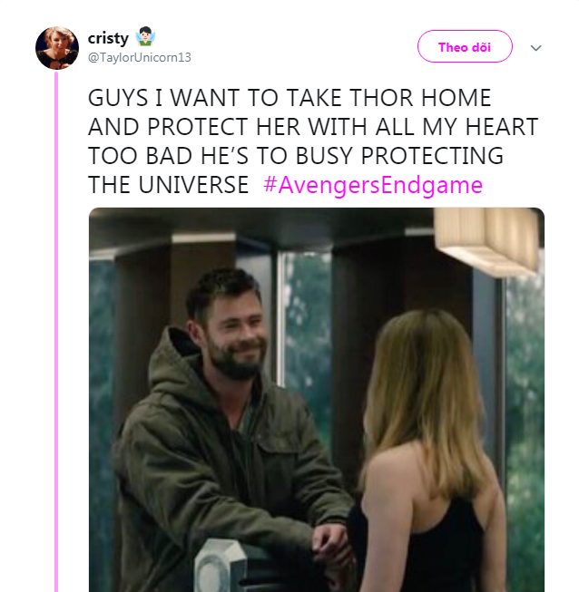 “Mấy đứa ơi chị muốn đem Thor về nhà cưng nựng sủng nịch quá, mà buồn quá ổng đang bận bảo vệ vũ trụ rồi“