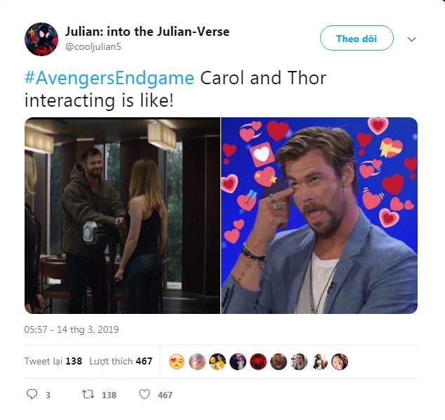 “Đây là tui khi thấy màn tương tác giữa Carol với Thor“