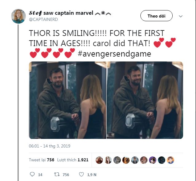 “THOR ĐANG CƯỜI KÌA!!!!! LẦN ĐẦU TIÊN SAU NHIỀU NĂM!!!! CƯỜI với Carol đó!“