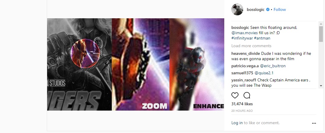 Hôm qua, IMAX đã tung ra poster của Avengers: Infinity War và ngay lập tức các ‘thánh soi” bắt đầu vào cuộc tìm kiếm các quả trứng phục sinh. Và một hình ảnh “ngoạn mục” mà các thánh đã soi được: Ant-Man, vâng, chính là anh ấy. Họa sĩ BossLogic đã đăng trên Instagram về quả trứng phục sinh đã soi được: Ant-man đang bám vào Găng tay vô cực của Thanos.