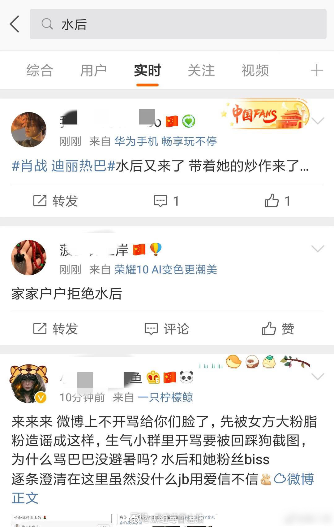 “Thủy hậu lại đến rồi, mang theo sao tác của cô ta đến rồi”. Bài đăng thứ hai: ” Người người nhà nhà cự tuyệt thủy hậu”
