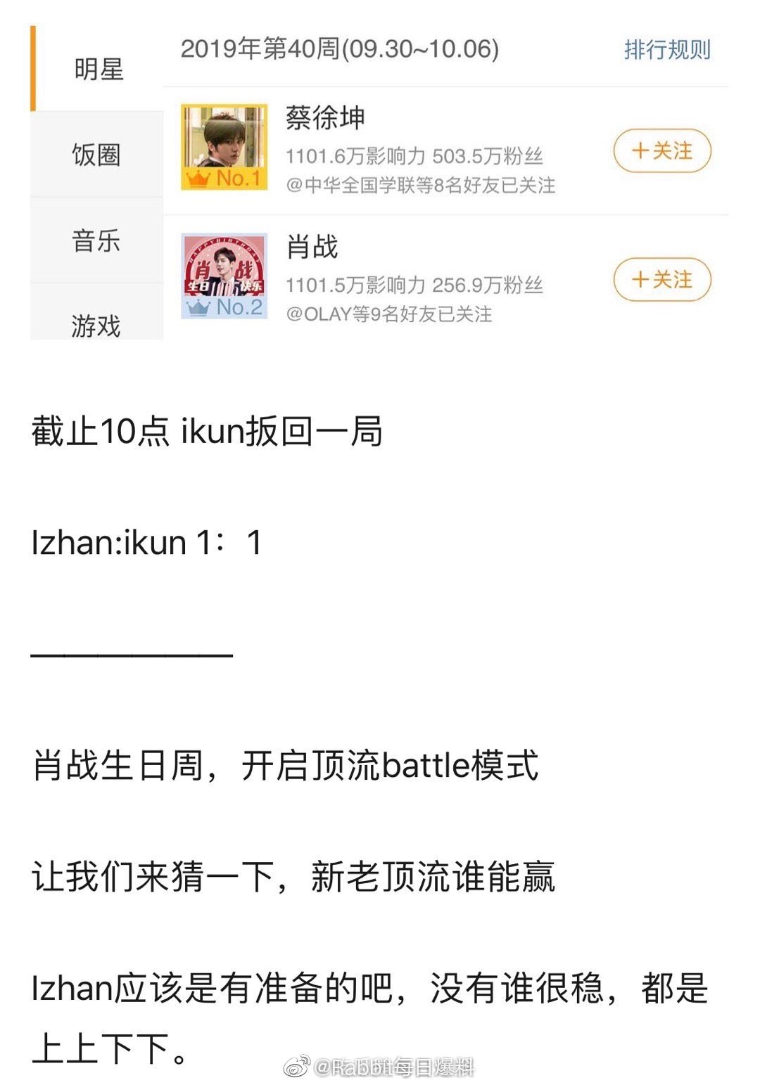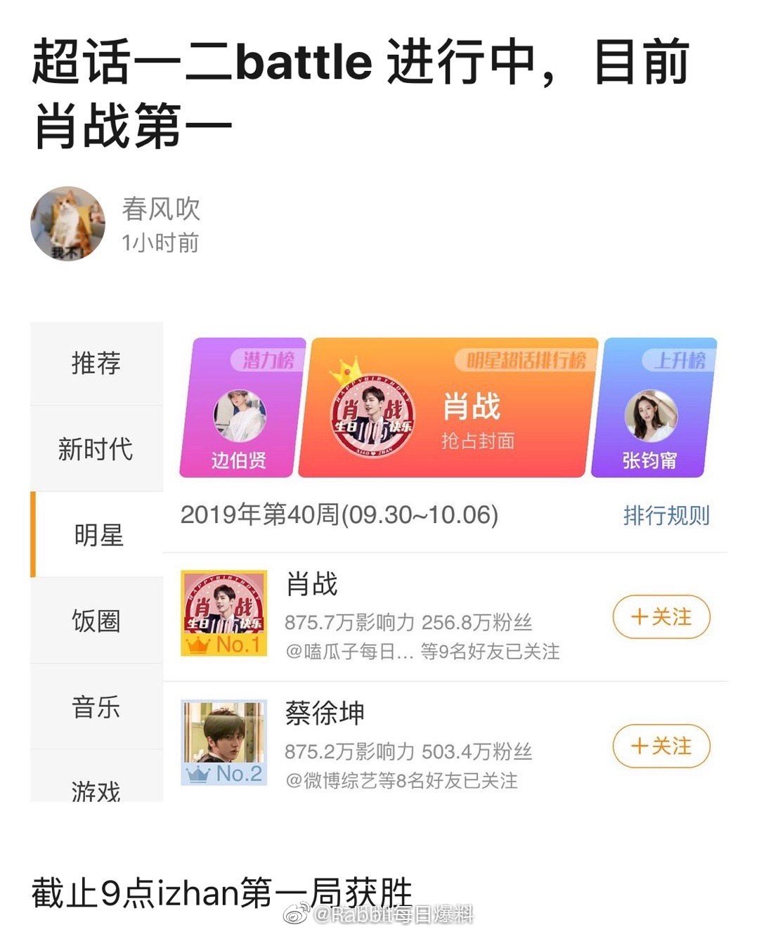 Trong lúc tuyên chiến với fan Châu Kiệt Luân, vì cuối cùng thua cuộc nên fan Thái Từ Khôn đã tuyên bố sẽ không quan tâm những thứ hạng này nữa mà tập trung vào các tác phẩm âm nhạc của thần tượng. Thế nhưng, nói được nhưng không mấy ai làm được, hiện tại fan Thái Từ Khôn đang cạnh tranh gay gắt vị trí này với fan Tiêu Chiến. Hai người thay phiên đổi vị trí 1 và 2 với nhau và hiện giờ cuộc cạnh tranh này vẫn đang diễn ra.