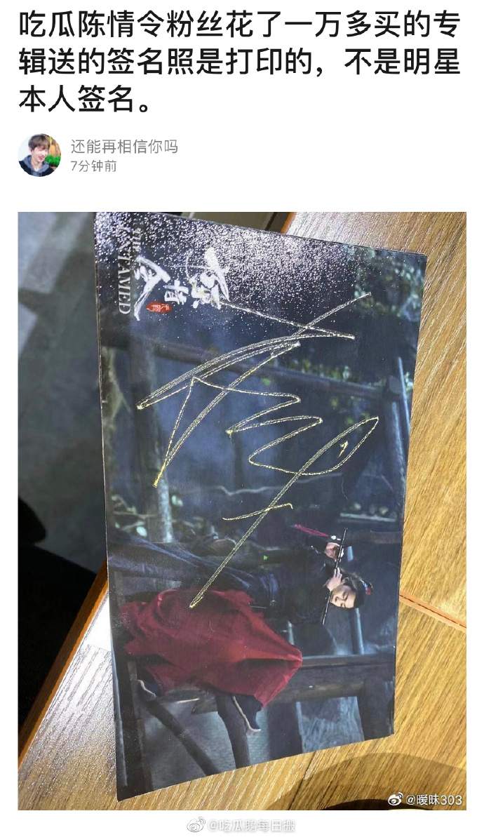 Người hâm mộ của Tiêu Chiến đã lên tiếng vì lợi ích của thần tượng và của bản thân họ. Họ nói vì để có thể nâng hạng cho vị trí trên bảng khi được xếp hạng nên mới tốn hơn 10,000 NDT để mua album cho thần tượng. Thế nhưng, kết quả là công ty truyền thông Tân Bái lại cho in ra hàng loạt hình ảnh chữ ký của Tiêu Chiến mà không phải đích thân Tiêu Chiến ký nên làm người hâm mộ bức xúc và muốn đòi lại công đạo thuộc về mình.