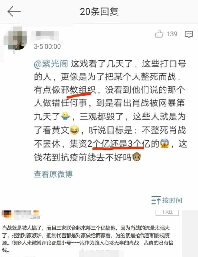 Nhiều fan hâm mộ Tiêu Chiến còn nhắc (tag) tài khoản của trung ương, yêu cầu chính quyền cấp trên xử lý hành vi của Vương Nhất Bác và công ty giải trí Yuehua: “300 triệu NDT nên ủng hộ chống dịch bệnh hơn là hại người khác. Thật sự tam quan bị hủy hoại nặng nề”.