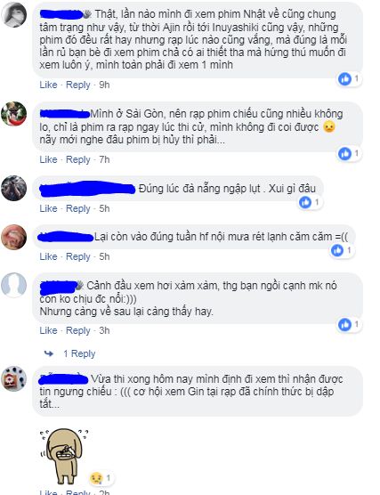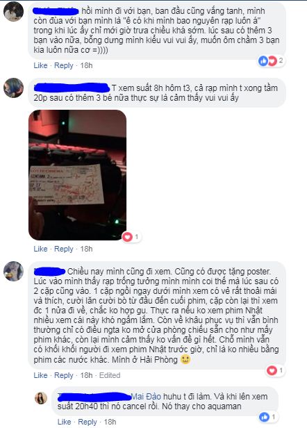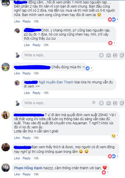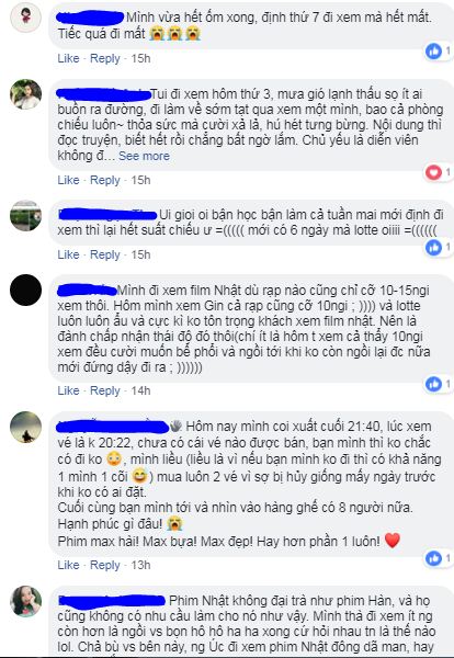 Không ít khán giả bày tỏ nuối tiếc vì không thể sắp xếp đi xem sớm hơn do vướng công việc, học hành thi cử, thời tiết mưa rét ở miền Bắc, lụt lội ở Đà Nẵng,… đến khi định đi xem cuối tuần này thì đã muộn mất rồi. Trong khi đó có nhũng người may mắn hơn vì đã xem rồi cũng tiếc không kém vì còn muốn xem phim thêm lần 2, lần 3 nữa.