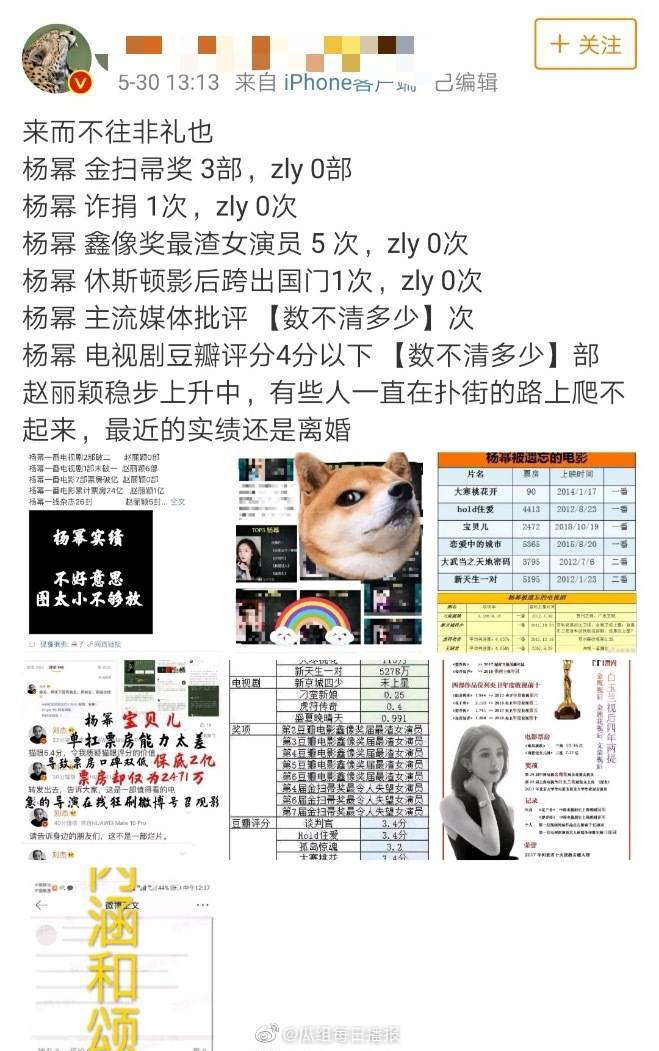 - Giải cây chổi vàng Dương Mịch đạt được ba bộ, Triệu Lệ Dĩnh không bộ
