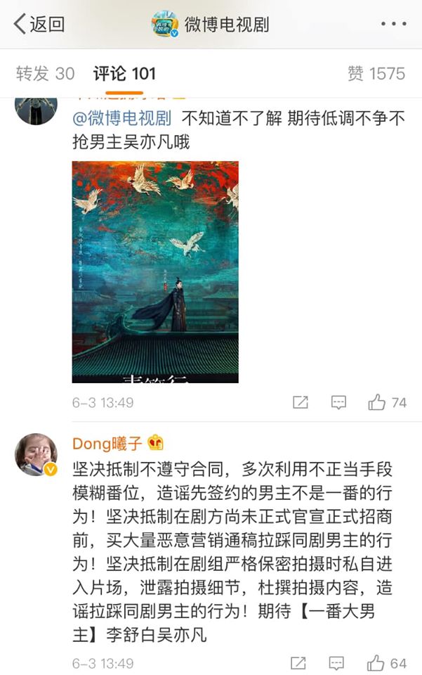 Hôm 3/6/2020, phim tung poster chính thức, tên Ngô Diệc Phàm bên trái tên Dương Tử bên phải, fan Dương Tử lại thay đổi cách nói, bảo tên bên trái không phải nhất phiên, bảo poster ngang dọc khác nhau các kiểu rồi nói bên phải Dương Tử mới nhất phiên tiếp. Fan Ngô Diệc Phàm đến khi tung poster chính thức mới phản ứng lại, bảo nhìn chính chủ mà nói chuyện, chờ tuyên bố chính thức, cự tuyệt mua bản thảo “xào” phiên vị.