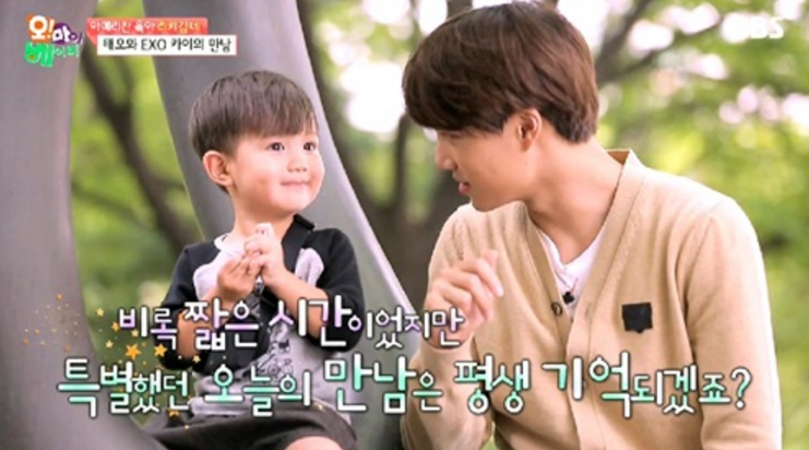 Bây giờ thậm chí nhiều người đã phải lòng phía Kai này nhờ sự xuất hiện gần đây của anh ấy trong The Return of Superman với Gunhoo và Naeun! Anh ấy có một số niềm vui lớn với chúng. Trong khi cũng đảm bảo rằng hai bé có một bữa ăn ngon miệng, anh ấy thực sự đã có cách với Naeun. Cô bé ấy thậm chí còn để anh ấy chạm vào tóc mình (và cô ấy thậm chí không để cho cha mình làm điều đó)!