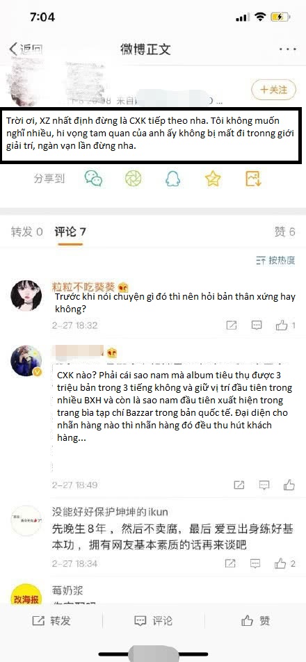 Trên thế giới này không có chuyện ai không xứng với ai, Thái Từ Khôn và Tiêu Chiến đều là hai nghệ sĩ có thực lực trong giới giải trí. Do đó khán giả nên có sự công nhận cao độ cho thực lực cho hai người họ. Tại sao người hâm mộ lại ác ý tạo nên tranh cãi không đáng có như vậy? Tuy nhiên cũng không loại trừ khả năng có người hâm mộ vì vấn đề tiền bạc đã ác ý tạo nên một loạt “drama” nhưng nếu nghĩ sự việc chỉ như vậy thì có thể làm giảm độ phủ sóng của Tiêu Chiến thì thật sự quá ngây thơ.