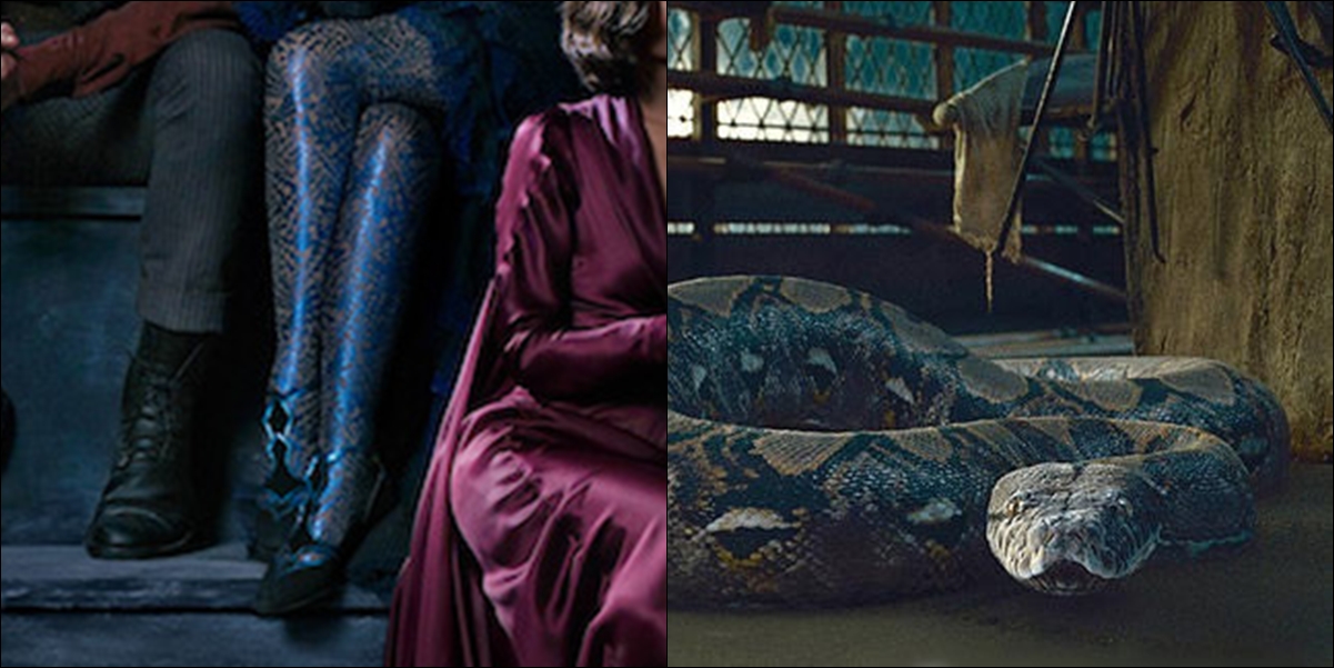 Có một giả thuyết cho rằng nhân vật của Kim thực ra là con rắn của Voldermort/Horcrux Nagini và đoạn trailer vừa tung ra lại càng như một căn cứ hùng hồn cho giải thuyết đó. Nếu bạn nhìn sâu hơn vào hình ảnh có độ phân giải cao từ Pottermore, bạn sẽ thấy một tấm poster có chữ “Maledictus” ở phía dưới cùng những từ tiếng Pháp “En Chair Et En Os” (trong xác thịt) và bức tranh của một con rắn ở trên. Những đồn đoán kết hợp với các ẩn ý trong đoạn phim giới thiệu như muốn hướng suy luận của chúng ta đến việc con vật mà Kim sẽ biến thành chính là rắn.