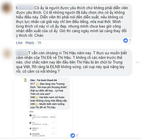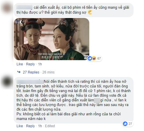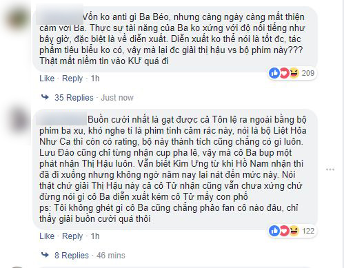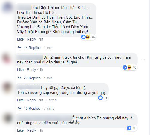 Còn ở Việt Nam, khán giả yêu mến phim Hoa ngữ cũng buông lời chỉ trích giải thưởng Kim Ưng 2018 khi đã trao giải cho Địch Lệ Nhiệt Ba.
