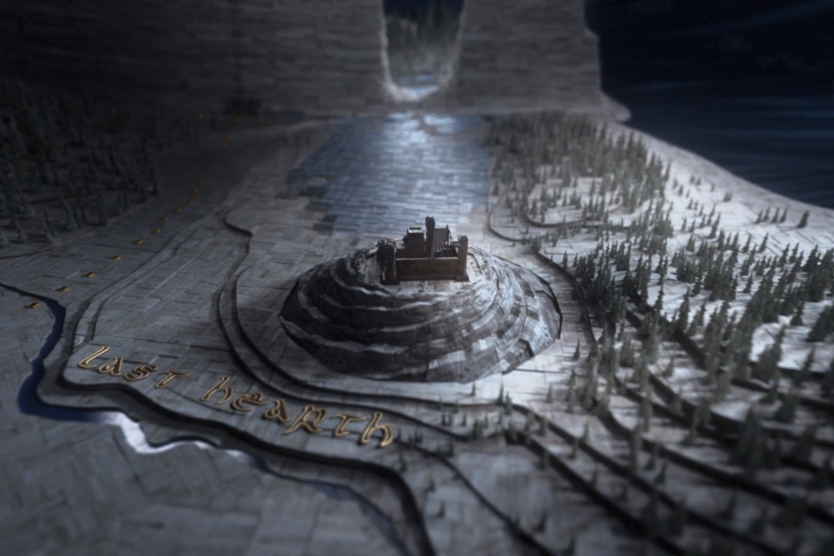 Về địa điểm mới Last Hearth trên bản đồ, Kirk Shintani - trưởng nhóm xử lý kỹ xảo CG cho phần mở đầu cho biết “Nếu bạn nhìn kĩ ngọn núi nơi Last Hearth đóng đô, thì nó mang hình dáng xoắn ốc giống như cách mà Bóng Trắng hay sắp xếp xác nạn nhân của chúng, và hơn hết là bạn chắc chắn đã thấy hình xoắn ốc rất nhiều lần xuyên suốt các bức tường phía bắc.”
