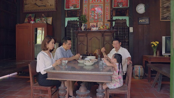 Bên cạnh đó, ở những phân đoạn cuối cùng, sau khi được ba vợ ủng hộ, cuối cùng, 1 nhà 4 người của gia đình Kiệt về quê thăm bố ruột. Những khoảnh khắc vui vẻ của ông Tuấn và bé Miêu (Ngân Chi) đã khiến khán giả vô cùng cảm động, bởi lẽ xuyên suốt bộ phim, người xem ít khi thấy ông Tuấn cười rạng rỡ đến như vậy. Tuy nhiên, niềm vui ngắn ngủi, sau buổi cơm chiều, chính vì Hân đòi về gấp gáp không dọn chén bát trên bàn ăn đã khiến cho Kiệt nổi giận.