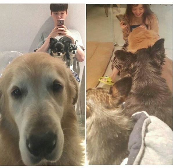 Bức ảnh thường ngày của vợ chồng Goo Hye Sun - Ahn Jae Hyun cho thấy cuộc sống hạnh phúc bên những chú cún cưng. Khán giả ghen tị và mong được sống bình dị như vậy.