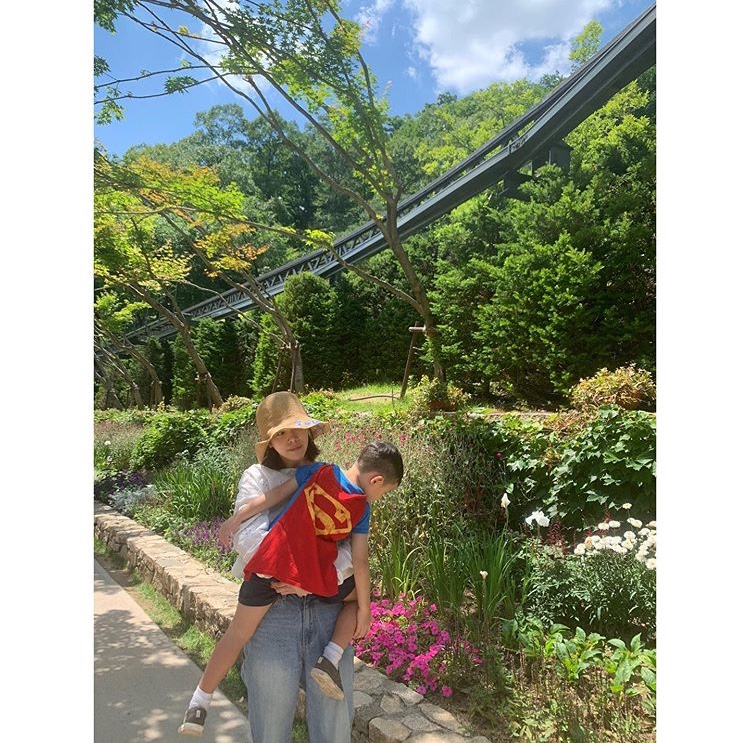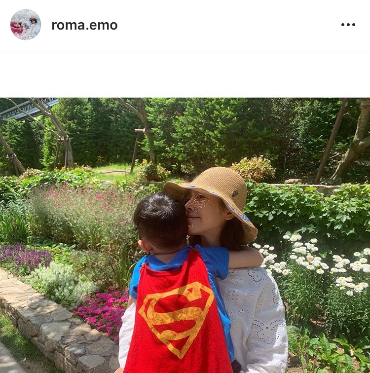 Han Ji Min chụp ảnh cùng cháu trai Roha: “Siêu nhân bay lên nào! #Chủ nhật #Cháu trai”.