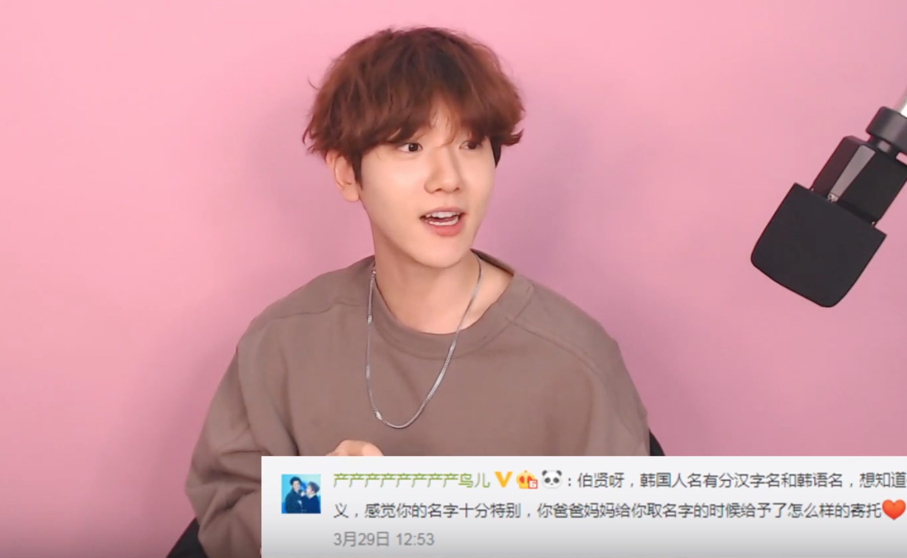 Baekhyun đã có một buổi phát sóng trực tiếp cho một tập gần đây của SM Super League Game và khi bắt đầu tiết mục trả lời câu hỏi của người hâm mộ, có một người hỏi liệu Baekhyun có biết ý nghĩa đằng sau tên của anh ấy không. Lúc đó, Baekhyun đã nói: “Ban đầu, tên tôi có trước khi tôi được sinh ra là ”Baekho”. Tên anh trai tôi là Baekbeom”.