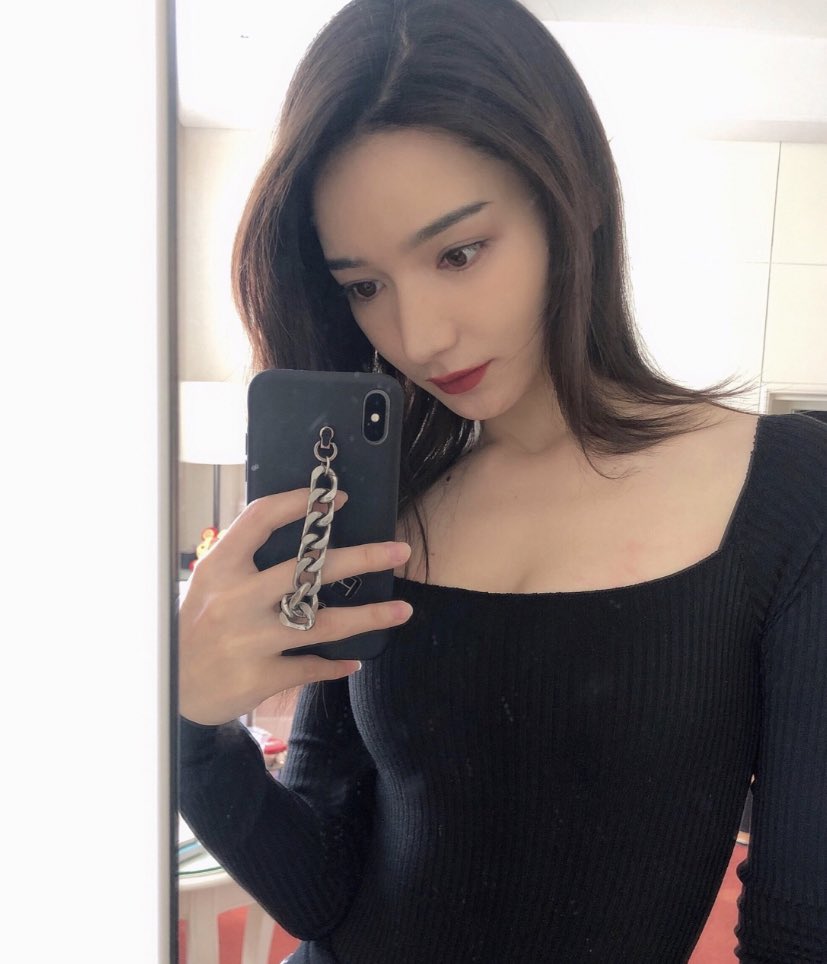 Đại Tư selfie trước gương, khoe vòng một đầy đặn.