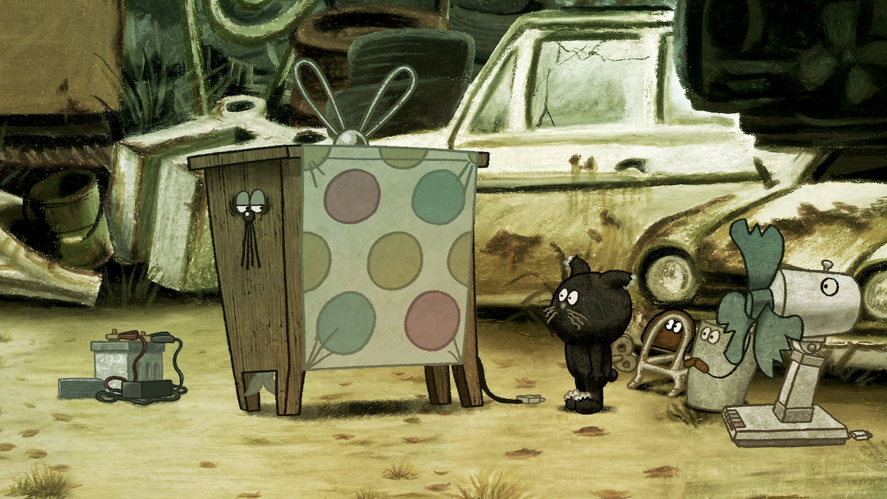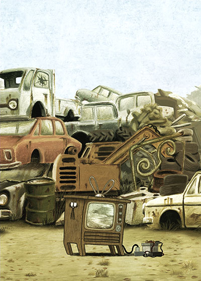 Phim xoay quanh nhân vật chính là một chiếc ti vi lỗi thời, được sản xuất từ thập niên 60, tuy còn dùng được nhưng vẫn bị thải bỏ, vứt lại chỏng chơ trong bãi phế liệu đầy những “xác chết” của các vật dụng. Tại đây, nó gặp thêm vài “vật sống” nữa, gồm một chú mèo vặn dây cót bị lòi bông, một chiếc xô bị thủng lỗ trước mặt, một chiếc quạt trông rất te tua và một chiếc ghế đã mất ván ngồi. Có thể thấy, những vật này vẫn chưa mất hoàn toàn giá trị sử dụng, chúng bị vứt bỏ vì sự lỗi thời nhiều hơn. Đặc biệt là chú mèo và chiếc ti vi, chúng dường như đơn giản bị thay thế chỉ vì sở thích của con người. Con người chỉ chạy theo những thứ mới mẻ hơn, và không thương tiếc ruồng rẫy những gì thuộc về quá khứ.