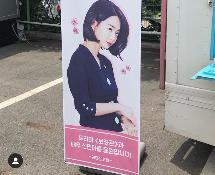 Trên tấm banner, Gong Hyo Jin nhắn gửi đến cận em gái thân thiết với thông điệp: “Ủng cho cho drama 'Advisor' và diễn viên Shin Min ạ. Từ Gong Hyo Jin”.