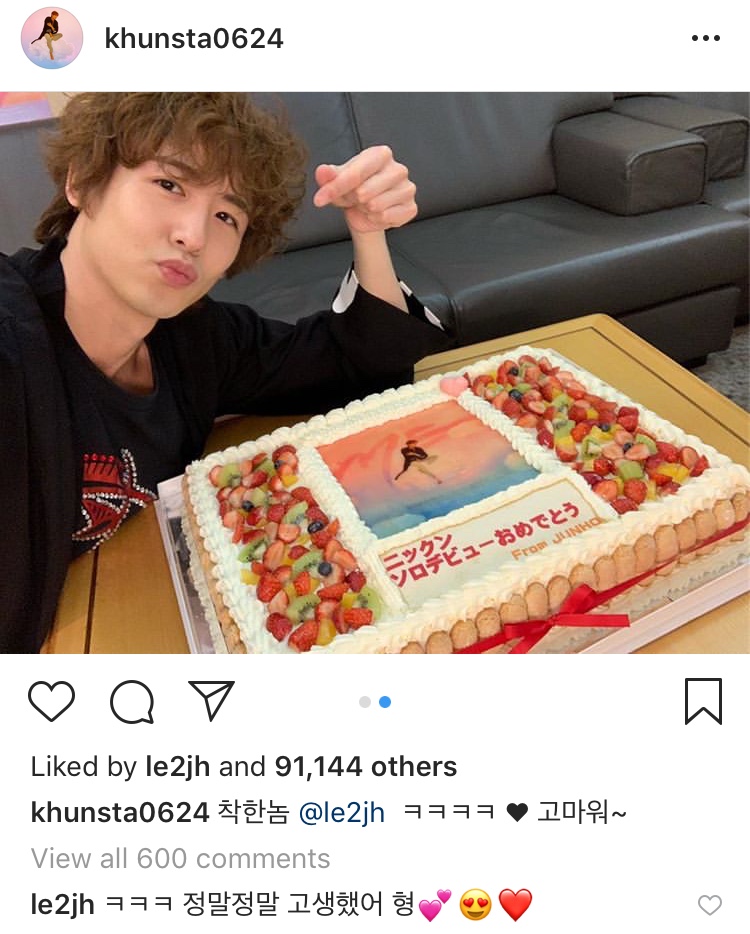 Nichkhun: “Chàng trai tốt bụng Lee Jun Ho hahahaha cảm ơn nha ~”. Jun Ho phản hồi: “Thực sự thực sự làm việc chăm chỉ rồi hyung”.