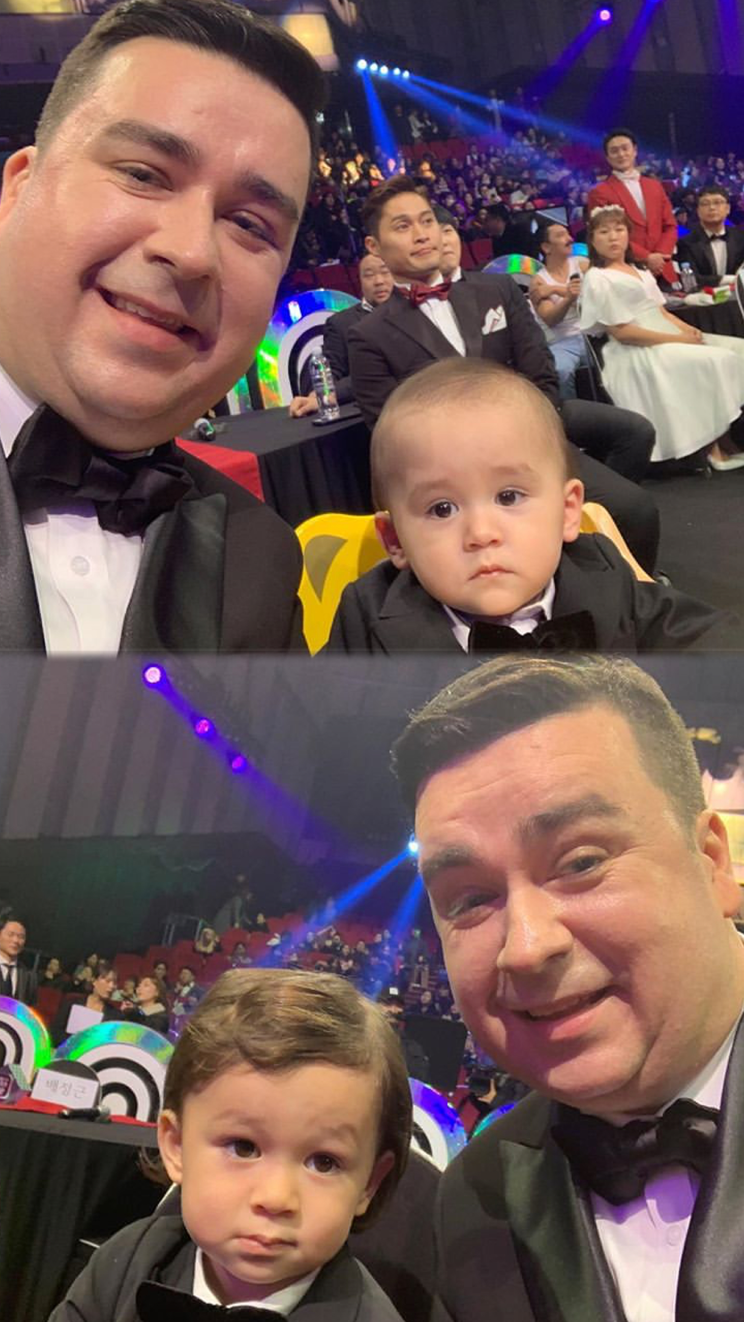 Vợ chồng ca sĩ Ko Ji Yong và con trai Ko Seung Jae tại lễ trao giải giải trí KBS vừa qua.