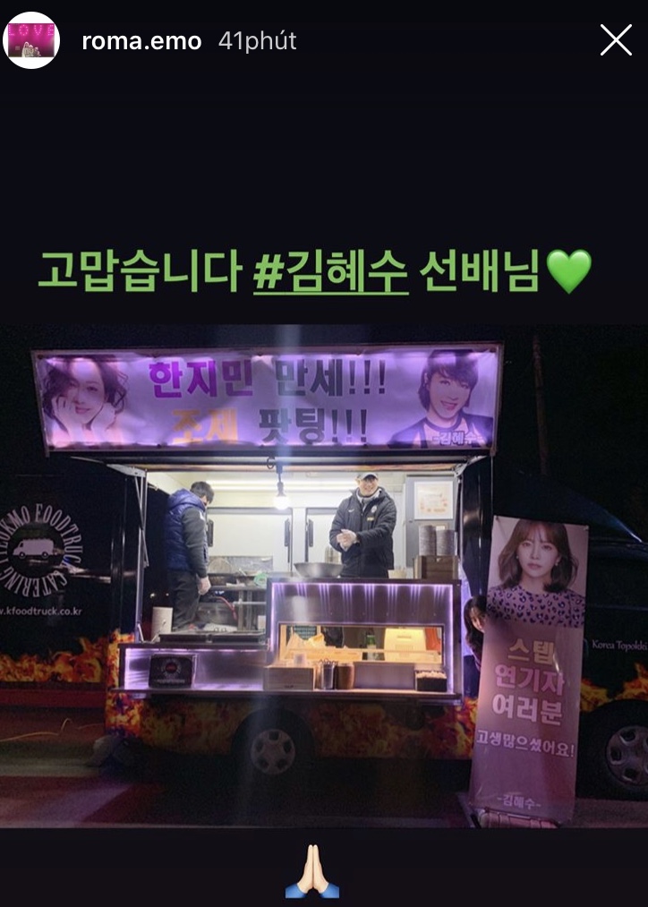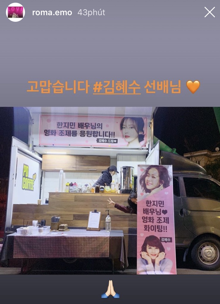 Han Ji Min: “Cảm ơn tiền bối Kim Hye Soo”. Trong khi, chị đại nhắn nhủ: “Ủng hộ 'Josee' và diễn viên Han Ji Min”.