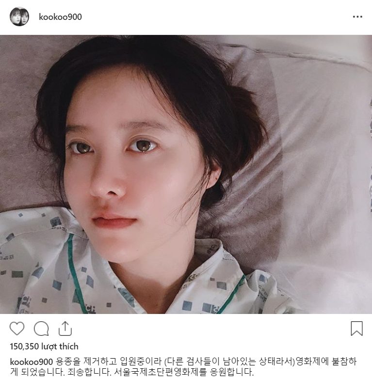 Đáp lại những báo cáo trên, Goo Hye Sun đã chia sẻ một bài viết thông qua mạng xã hội Instagram với nội dung: “Tôi đã phải nhập viện để loại bỏ polyp (và vẫn còn phải xét nghiệm những thứ khác). Do đó tôi sẽ vắng mặt trong kỳ liên hoan phim sắp tới. Tôi vô cùng xin lỗi. Đổi lại, tôi sẽ cổ vũ cho Liên hoan phim ngắn quốc tế Seoul”.