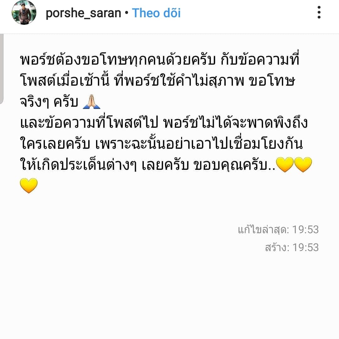 Lời xin lỗi của Porshe Saran trước sự việc trên